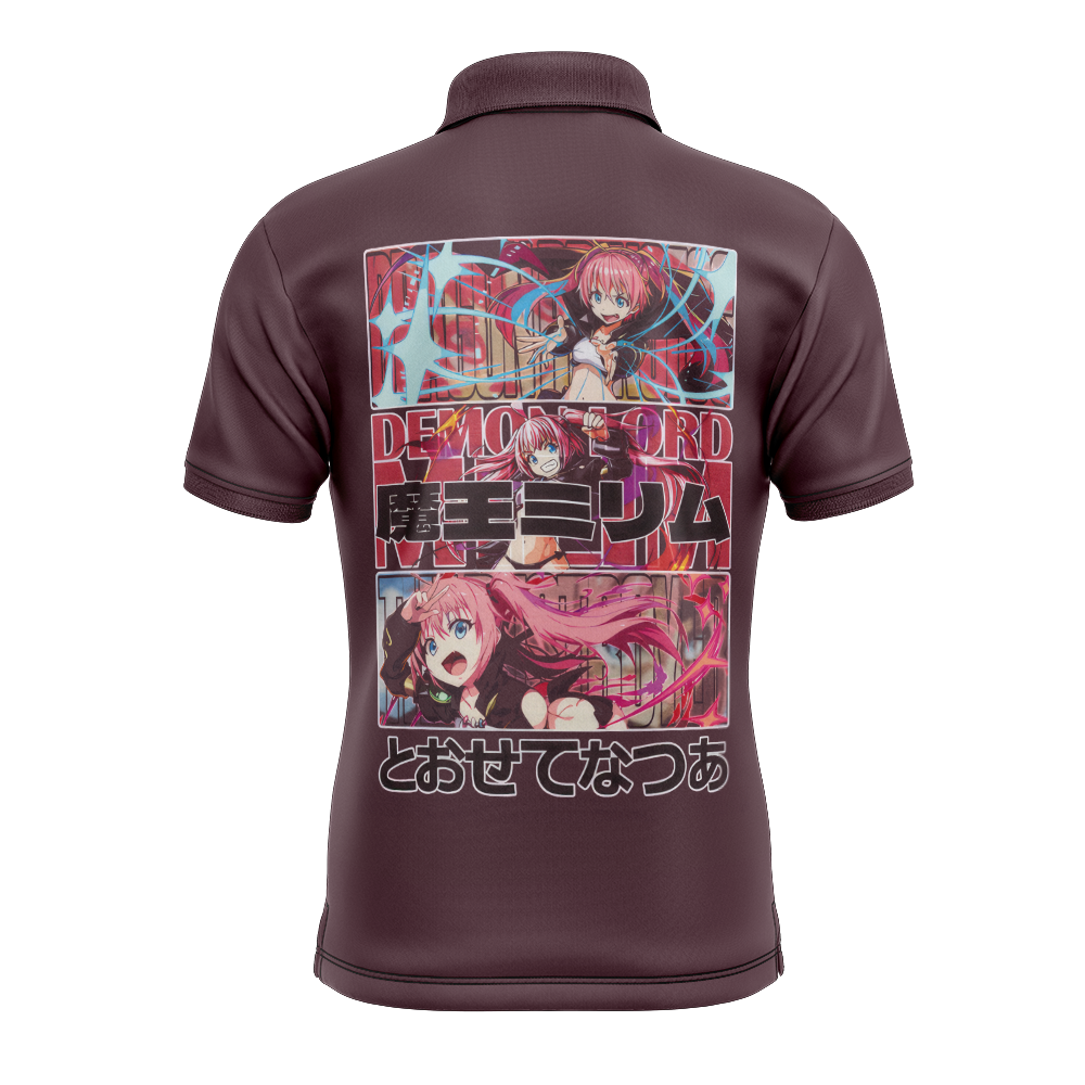 Explore AnimeBape’s wide array of premium anime clothing and accessories. Embrace your favorite characters like never before with the Milim Nava That Time I Got Reincarnated as a Slime Polo Goft Shirt.