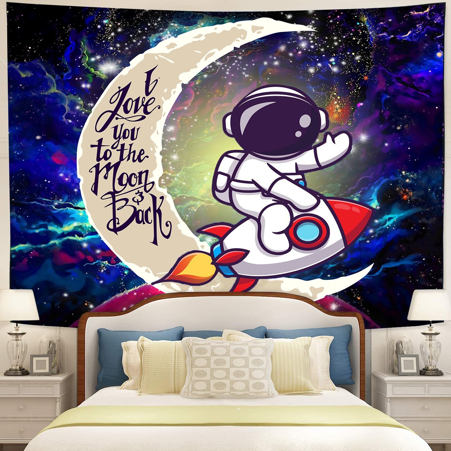 Astronaut Chibi Moon And Back Galaxy Tapestry Room Decor