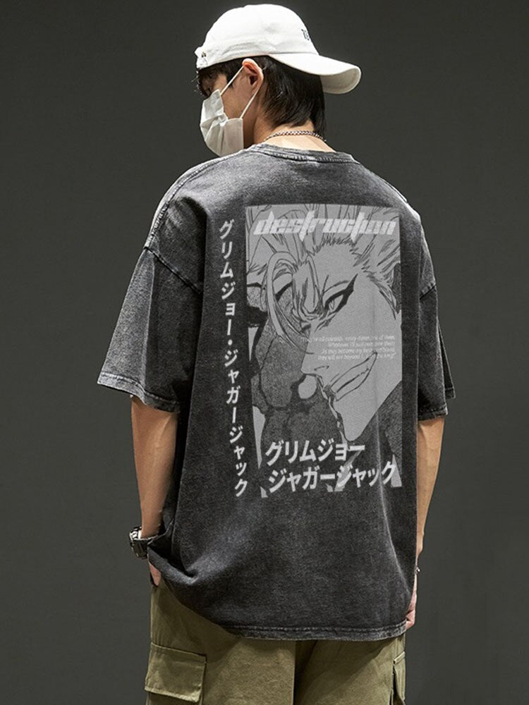 Embark on an adventure to Soul Society with our Anime Bleach Ichigo Kurosaki Graphic Tee Vintage T-shirt, a homage to this striking character. Ichigo Kurosaki, the rough and tough supernatural fearless hero, is the embodiment of power, resilience, and tenacity, traits that are artistically captured in the graphic imprint on the tee.