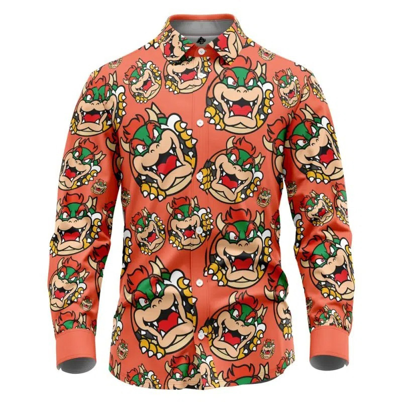 Bowser Mario Bros Long Sleeve Button Up Shirt