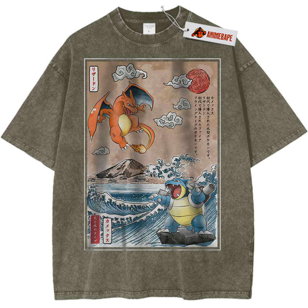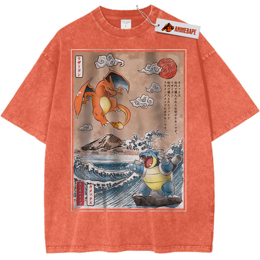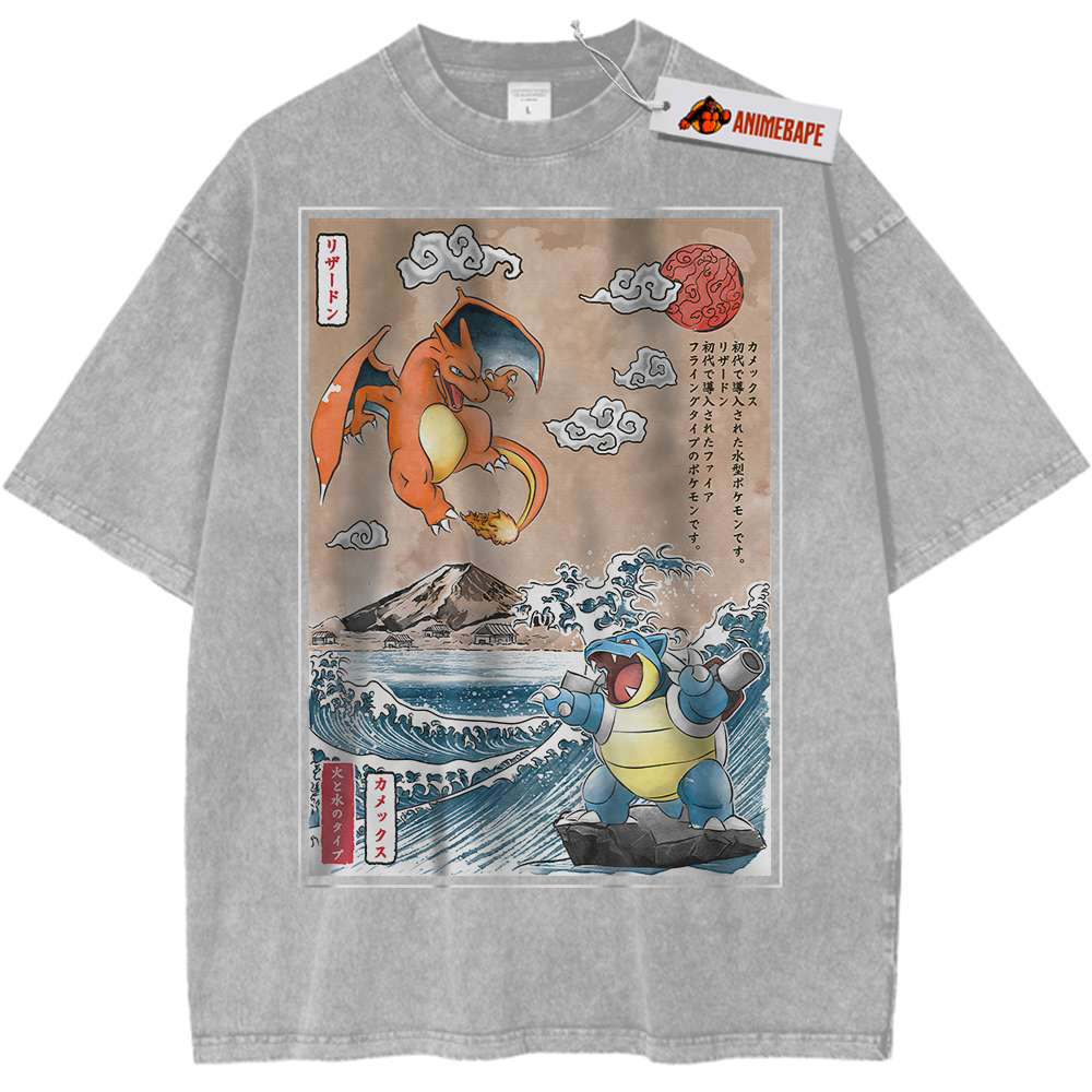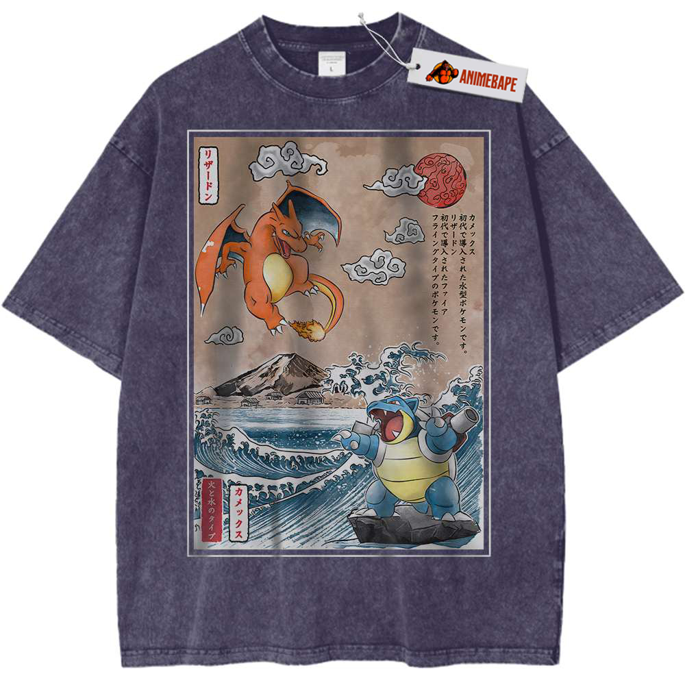 Both Charizard and Blastoise originated from the Pokémon anime series that has captured hearts since its debut in 1997. The show follows Ash Ketchum and his journey to become a Pokémon Master. Along the way, he encounters these two powerhouse Pokémon, showcasing their strength, loyalty, and significance in the Pokémon universe. Fans of the anime will appreciate the homage this shirt pays to such iconic characters.