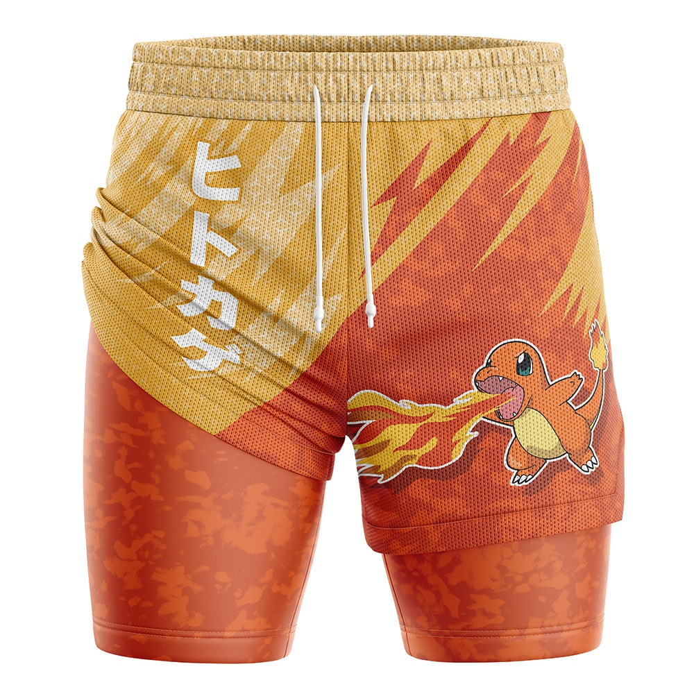Charmander Attack V1 Pokemon Compression Workout Training Shorts (2-in-1)