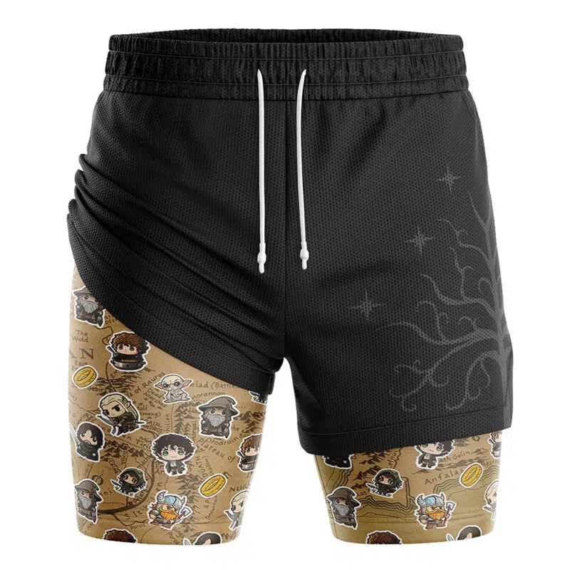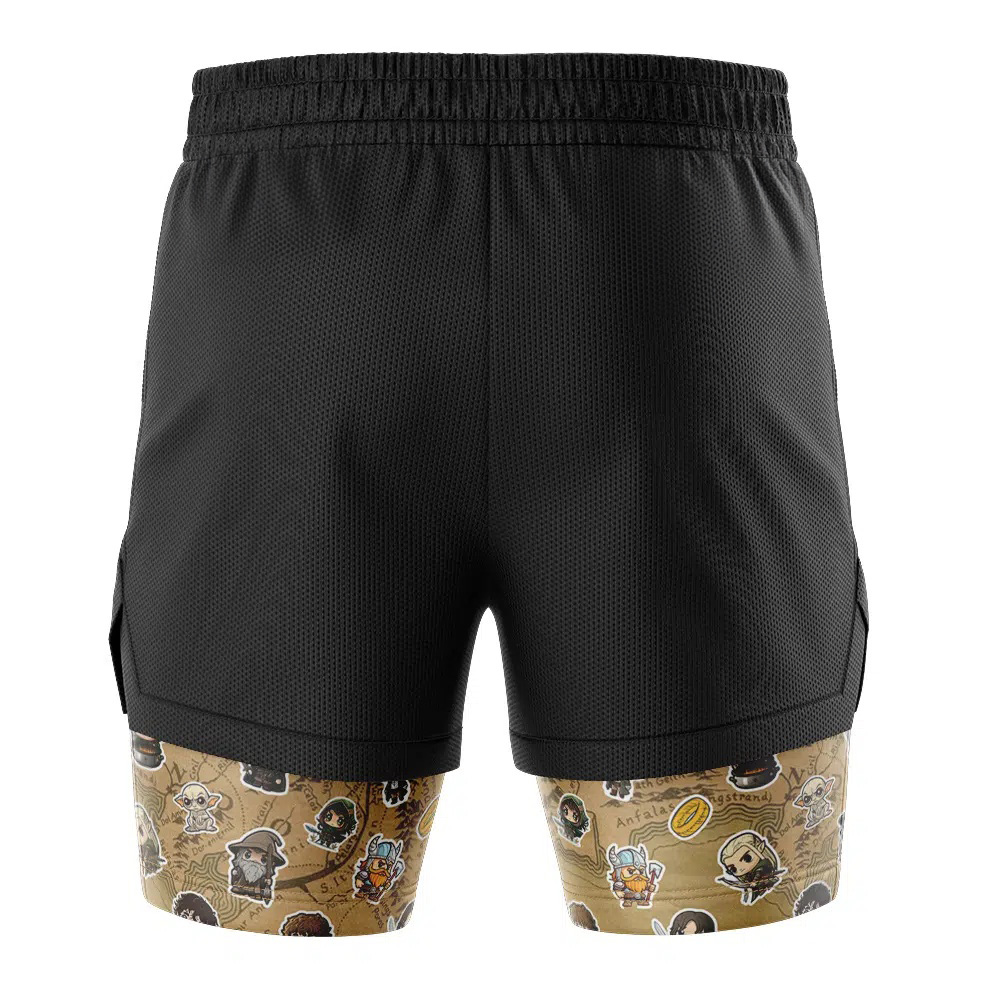Chibi Fellowship of the Ring Lord of the Rings Compression Workout Training Shorts (2-in-1)