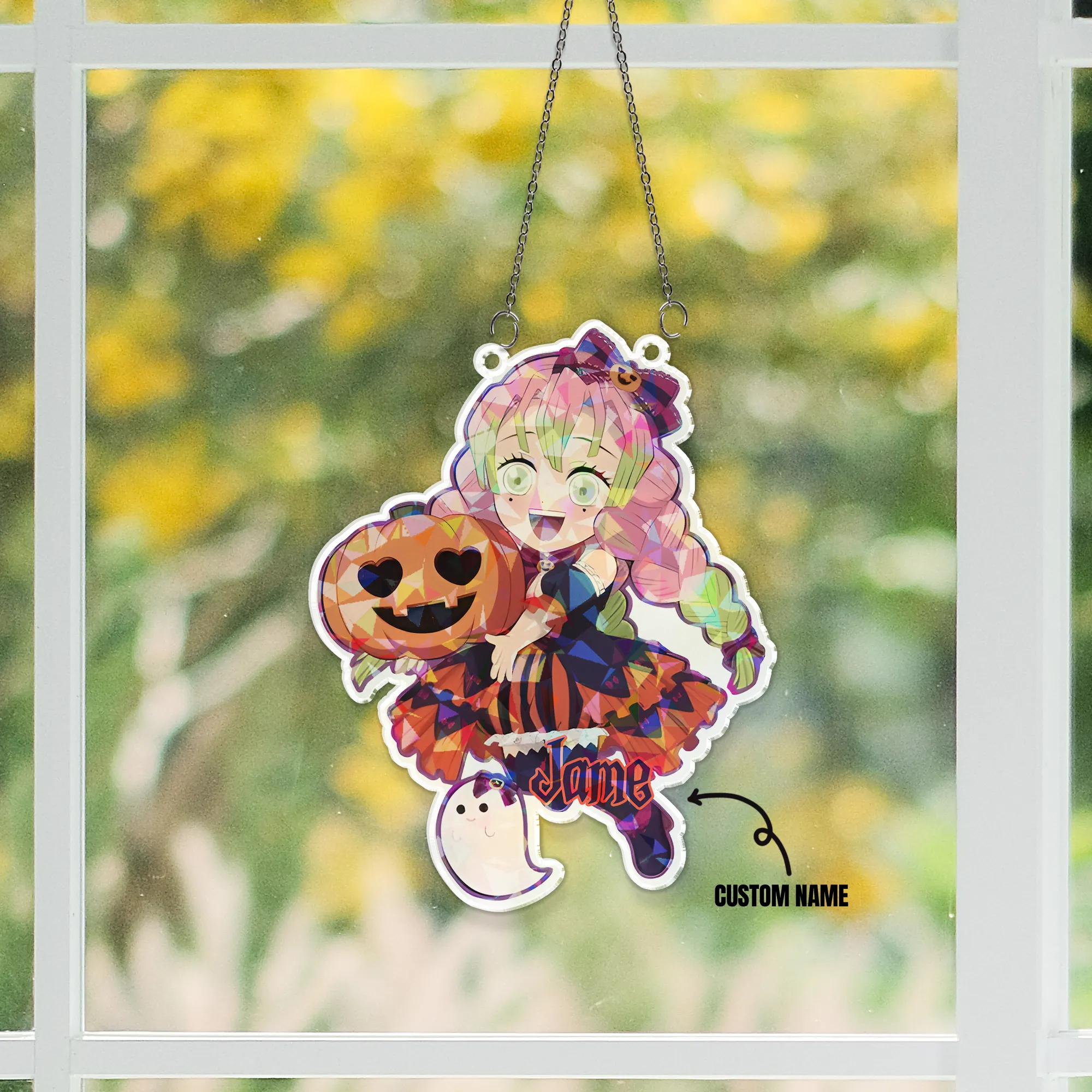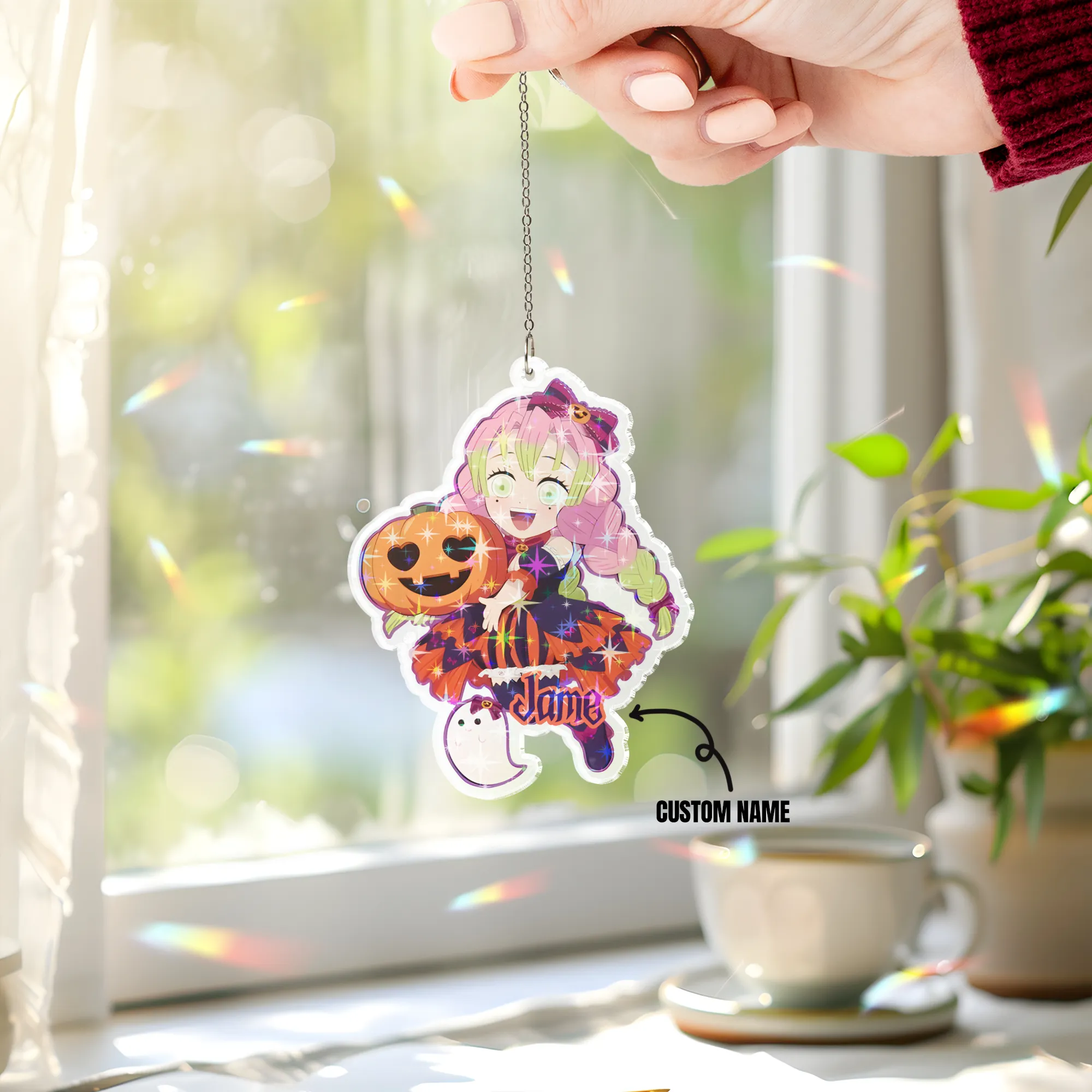 Custom name Mitsuri Kanroji Demon Slayer Hologram Starbust Broken Glass Ornament
