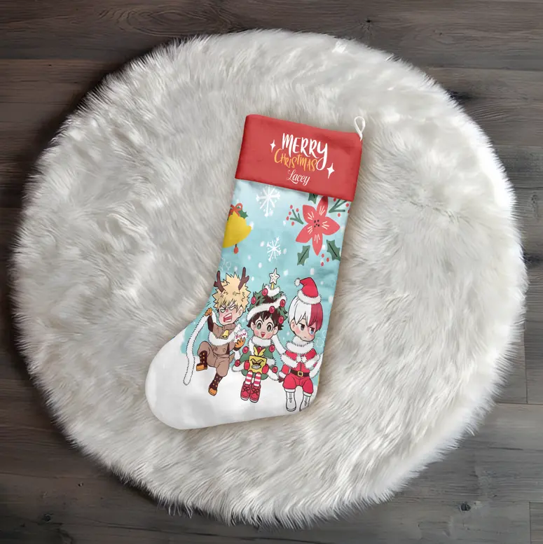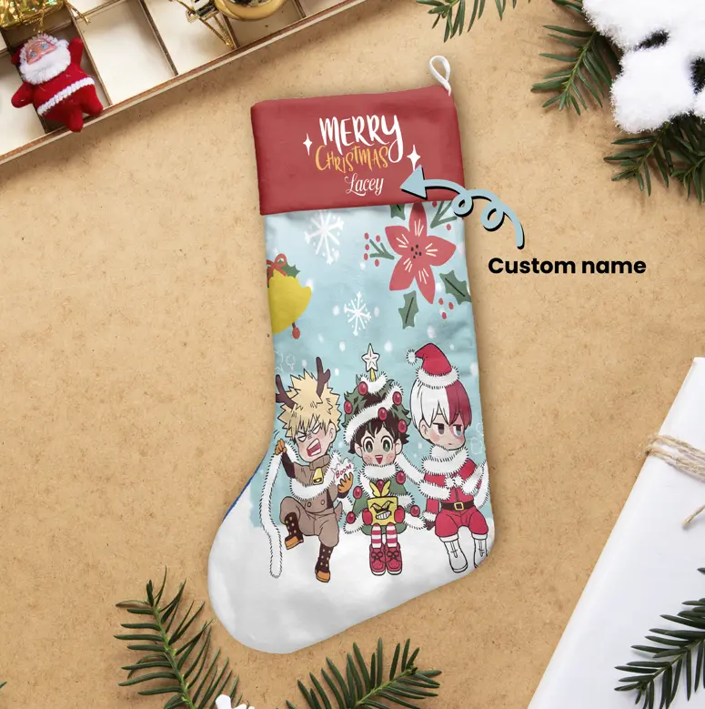 Bring the heroic spirit of U.A. High School into your holiday celebrations with our Custom Name My Hero Academia Christmas Stocking! Featuring your favorite heroes from My Hero Academia, this exclusive stocking captures the courage, determination, and heartwarming moments that fans adore.