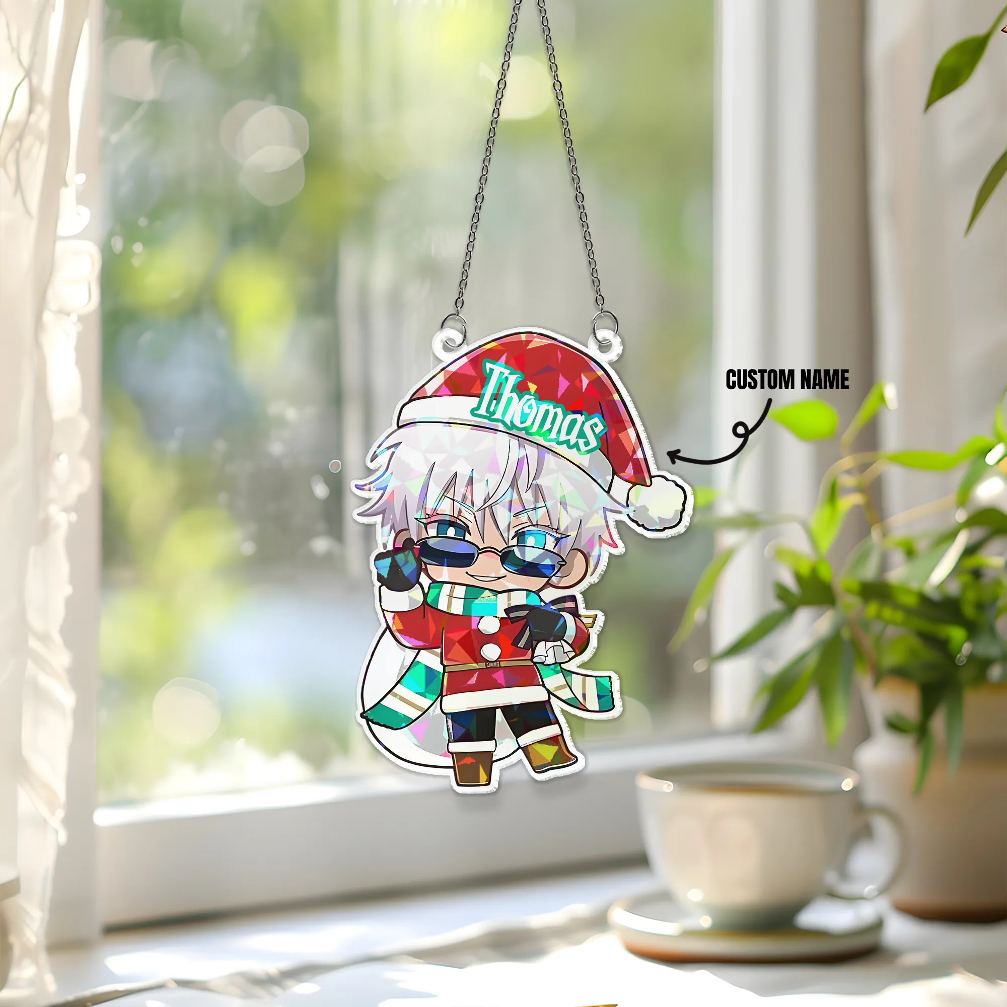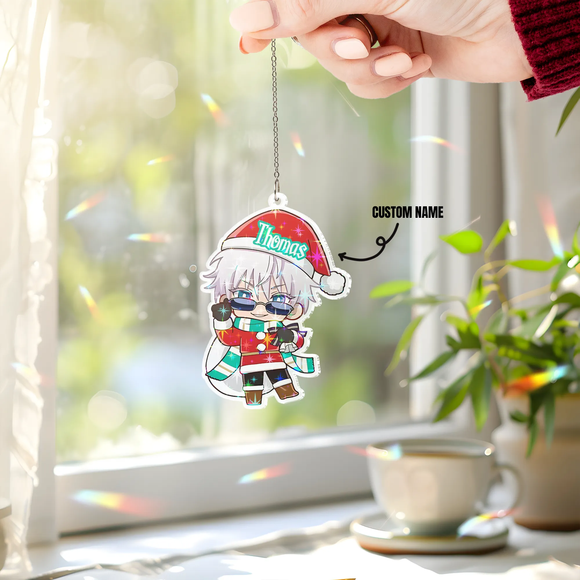 Custom name Satoru Gojo Jujutsu Kaisen Hologram Starbust Broken Glass Ornament