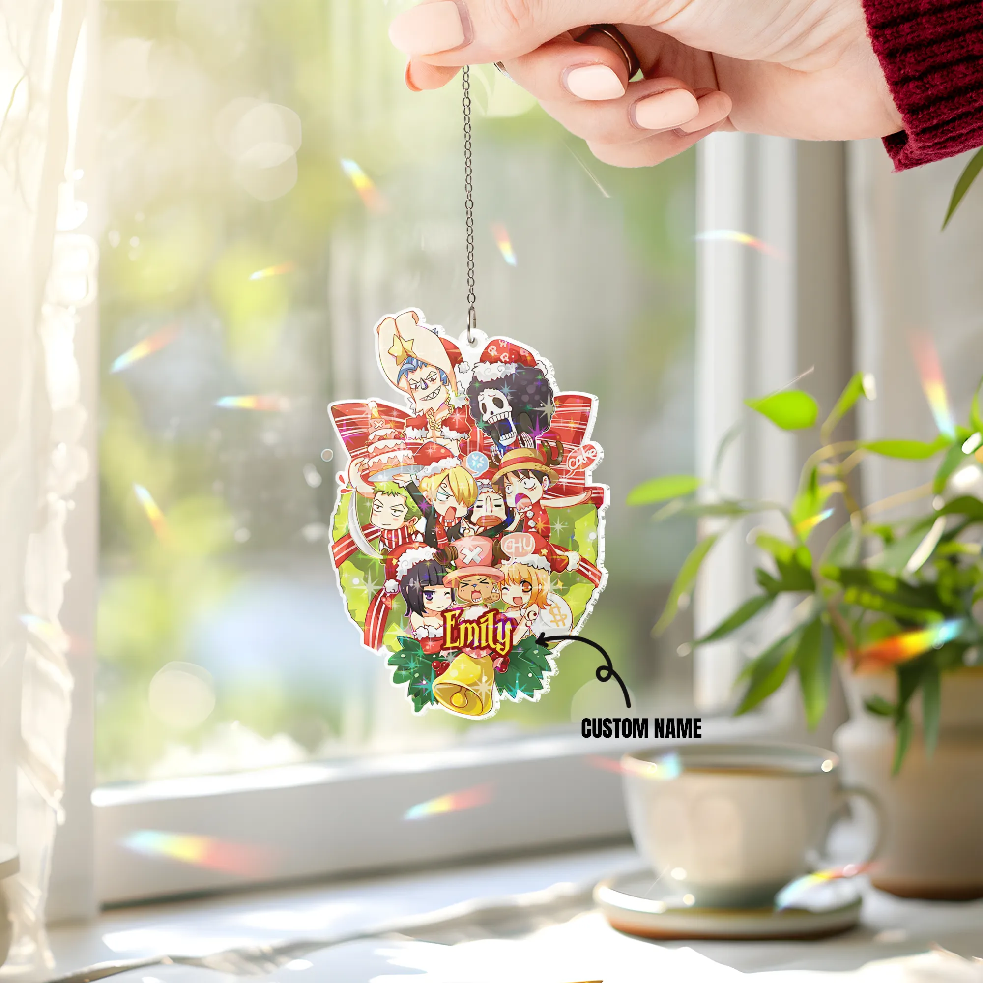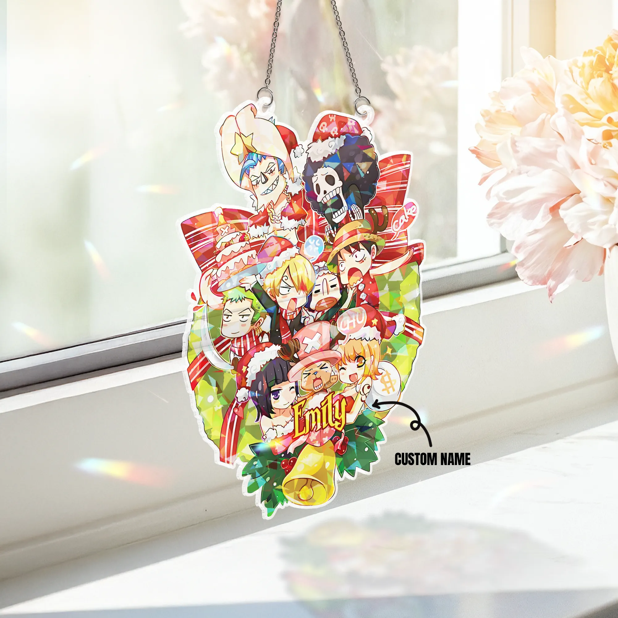 Thank you for reading this post, don't forget to subscribe!Custom Shape Hologram Ornament Bring sparkle and elegance to any light-filled space with the Custom Shape Hologram Ornament. Whether hung in a window, on a Christmas tree, or used as a decorative accent, this ornament reflects light beautifully, creating a dazzling, shimmering effect from every angle. Two Unique Surface Effects Choose the holographic style that best matches your aesthetic: Star Effect – A refined pattern that glimmers like a sky full of stars. Broken Glass Effect – A bold and dynamic texture that refracts light into vibrant, colorful spectrums. Product Details Material: 3mm-thick hologram acrylic – smooth surface with an iridescent, color-shifting glow under light; lightweight yet durable. Printing Technology: High-quality UV printing ensures vivid, sharp, and long-lasting colors. Available Sizes: Multiple size options suitable for both indoor and outdoor decoration. Accessories Included: Metal chain and suction cup hook for easy hanging and versatile display. The Custom Shape Hologram Ornament is a perfect harmony of light and design, bringing a modern, eye-catching touch to any space. The product you receive will not include our Animebape logo. Any logo shown in the images is for display purposes only.