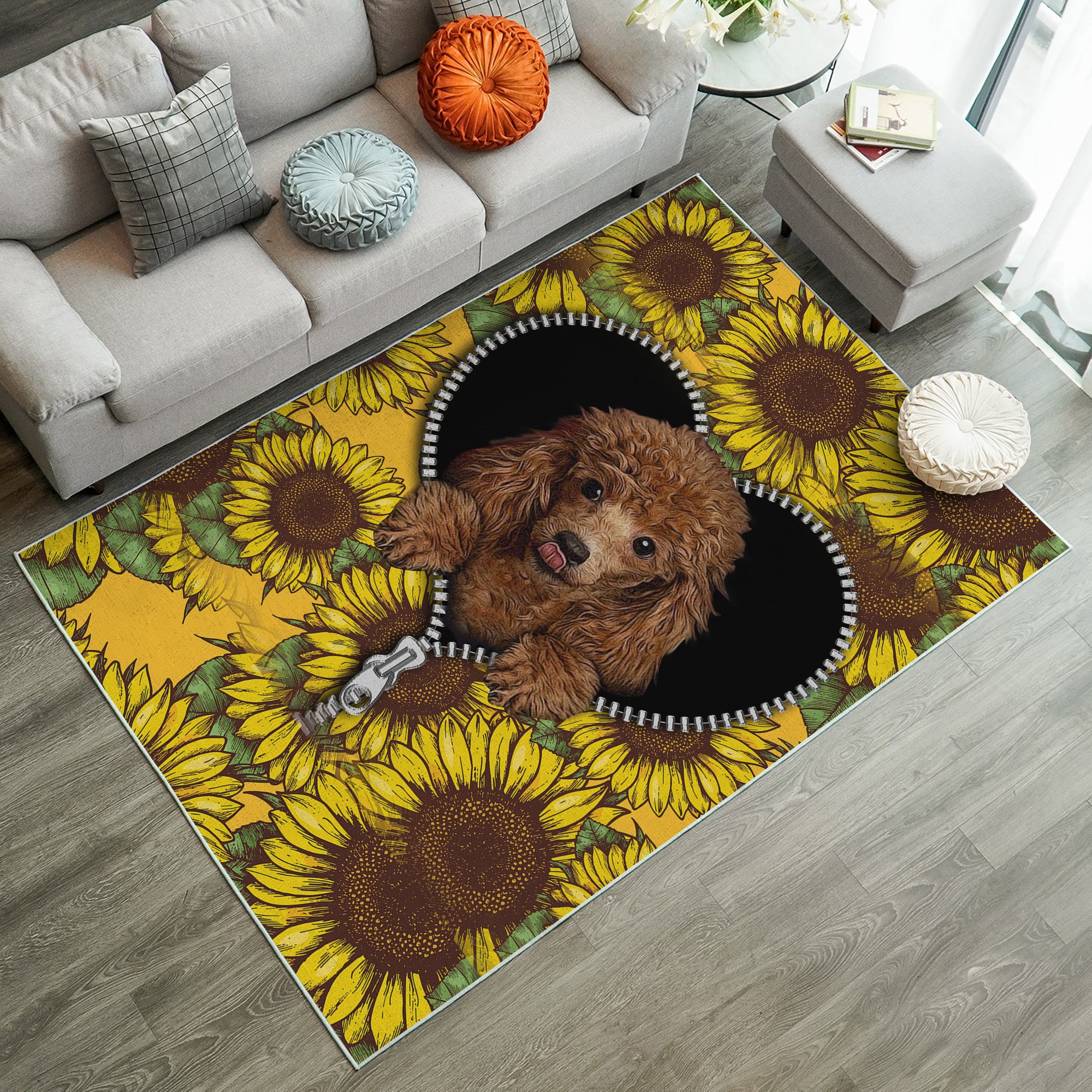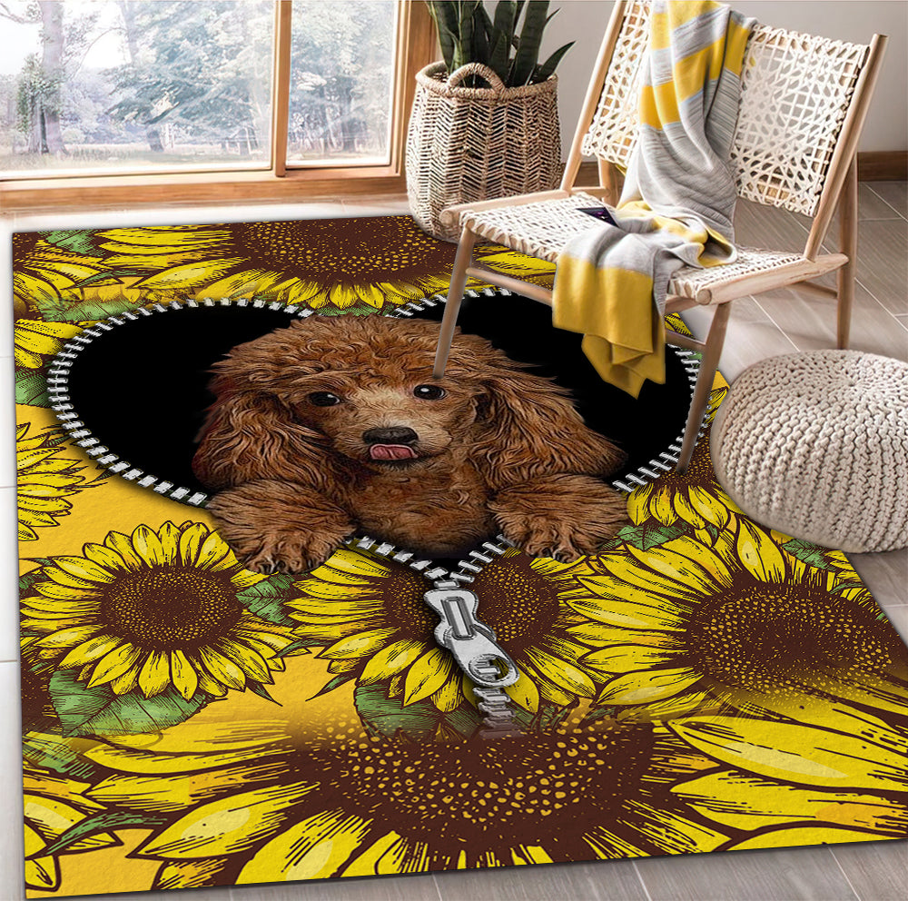 Cute Dog Poodle Sunflower Zipper Rug Carpet Rug Home Room Decor