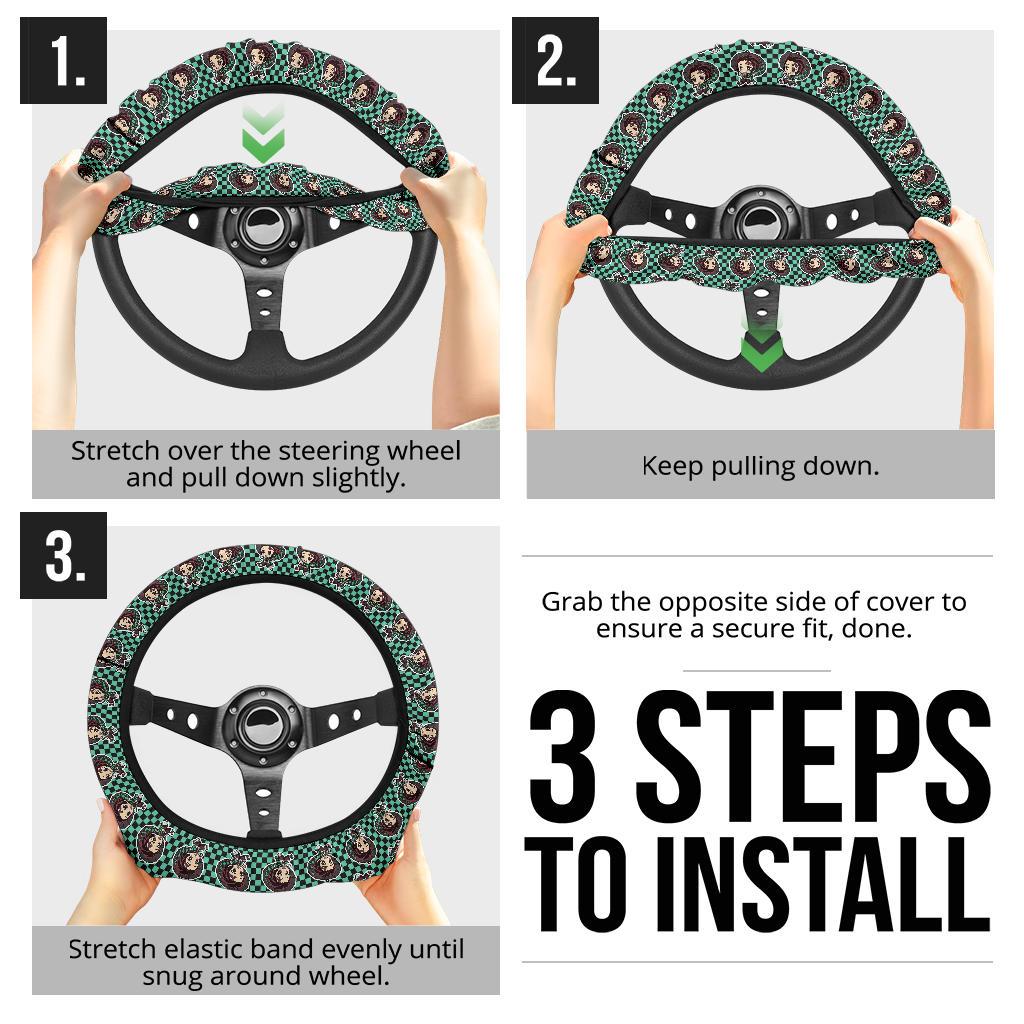 Anime Cute Kamado Tanjiro Demon Slayer Steering Wheel Cover for Cars – Car Steering Wheel Cover