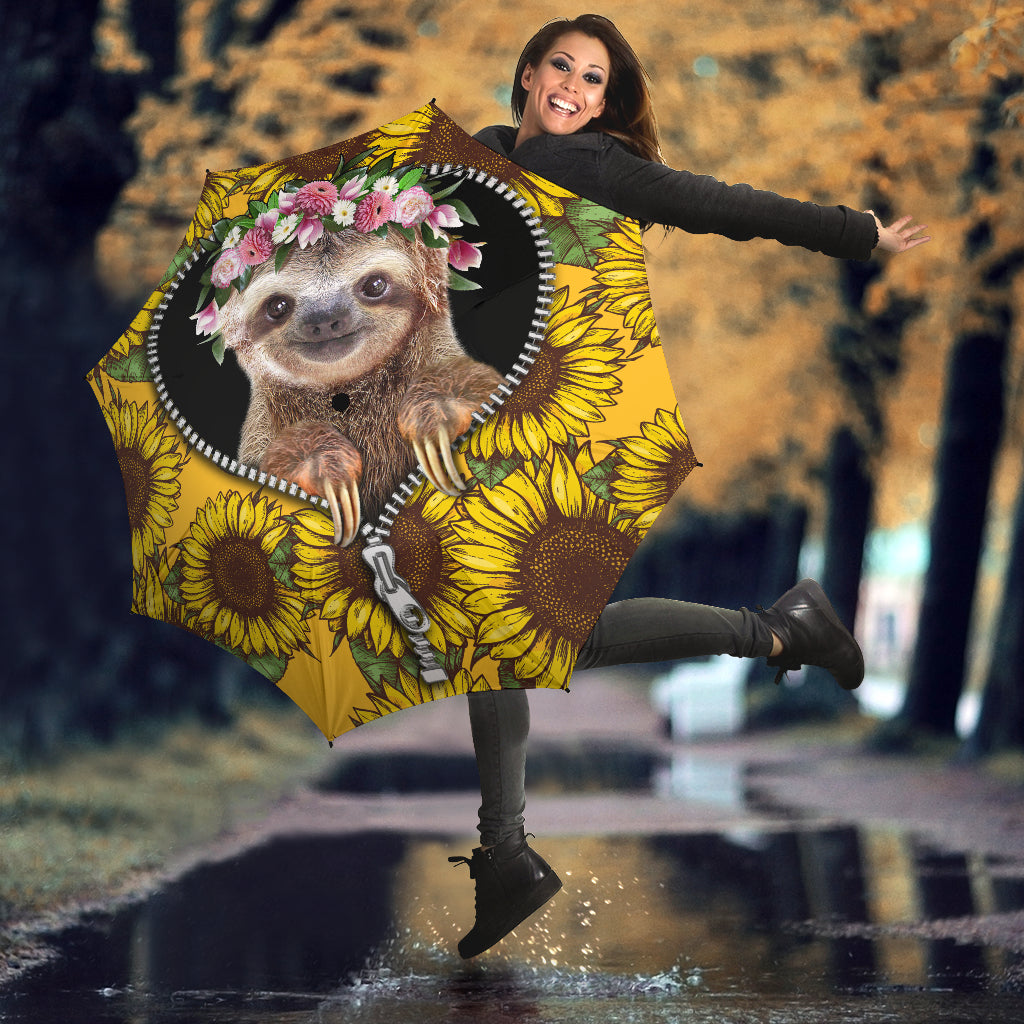 Cute Sloth Sunflower Zipper Umbrella