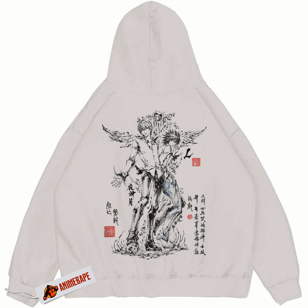 Thank you for reading this post, don't forget to subscribe!Step into the shadows of the Death Note universe with our exclusive Deathnote Vintage T-Shirt, available only at AnimeBape. This isn’t just a shirt; it’s a canvas that portrays the enigmatic world of Light Yagami and the haunting cat-and-mouse game between him and L. If you’re an anime fan who appreciates the darker themes and moral quandaries that make Death Note a classic, this vintage tee is the perfect addition to your wardrobe.