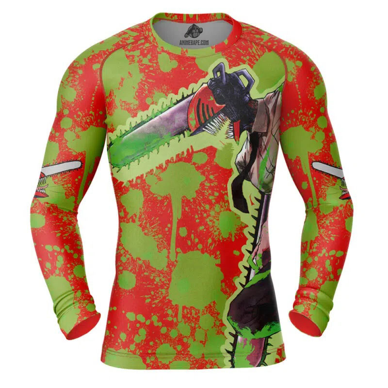 Denji Chainsaw Man Long Sleeve Rash Guard Compression Shirt
