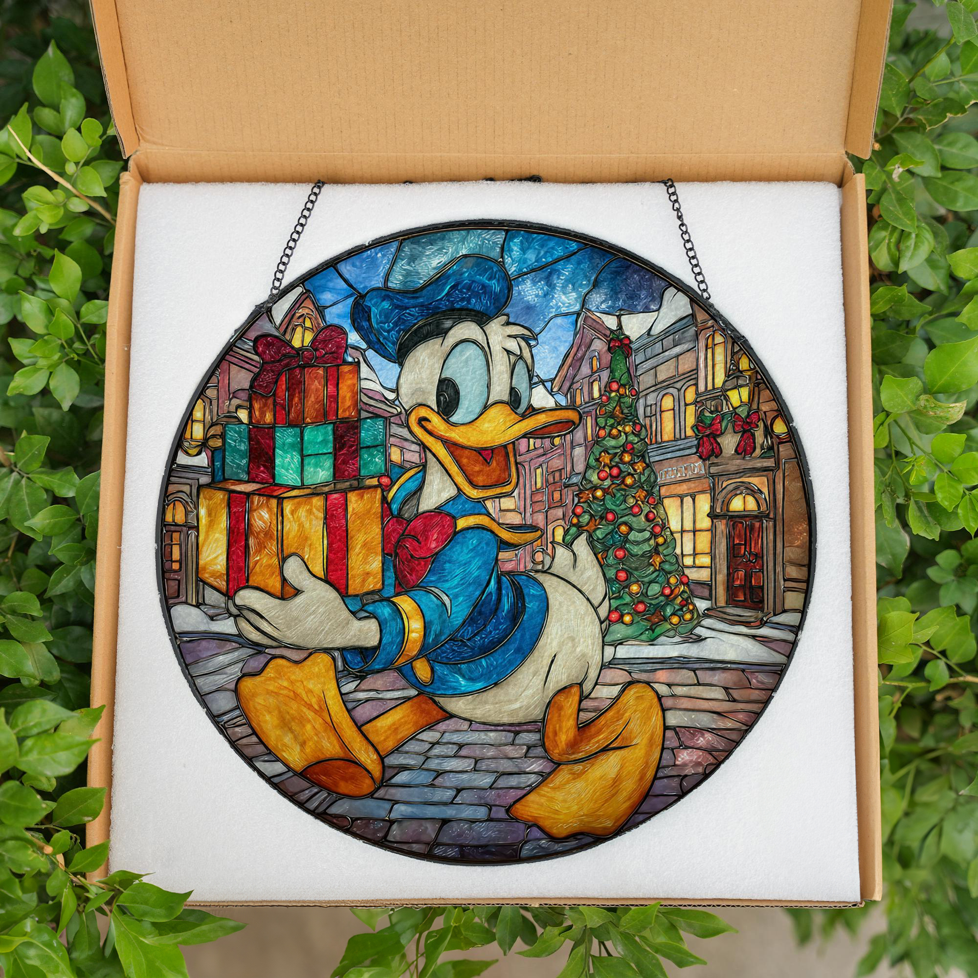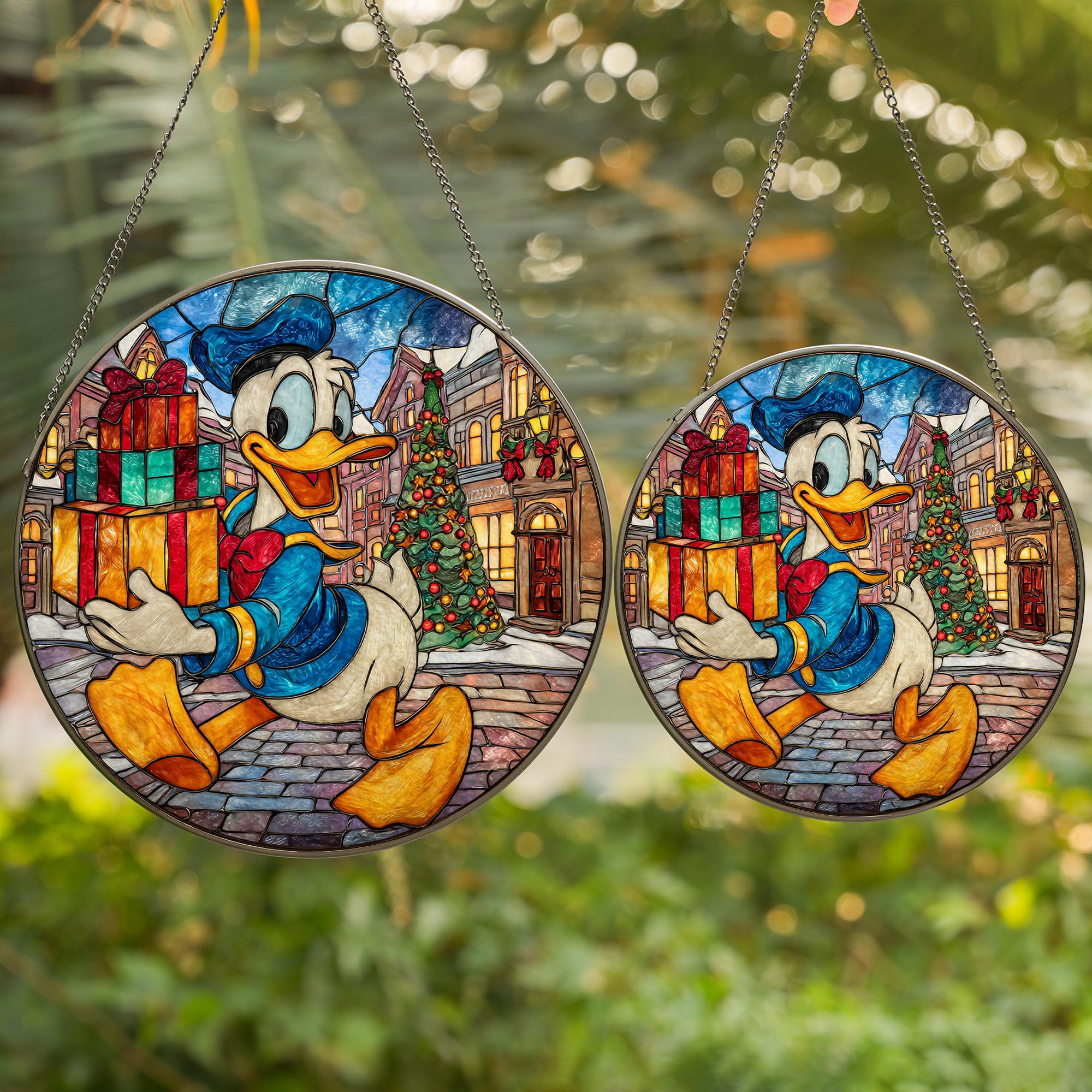 Disney Donald Duck Holiday Stained Stained Glass Suncatcher