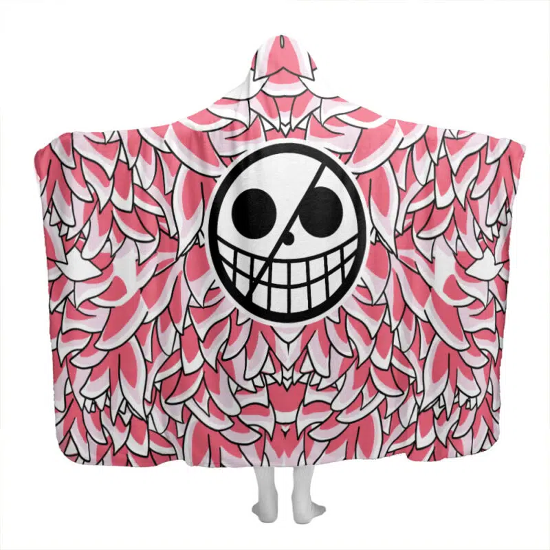 Unleash your inner anime fan with the Doflamingo One Piece Pirates Hooded Blanket from AnimeBape today!
