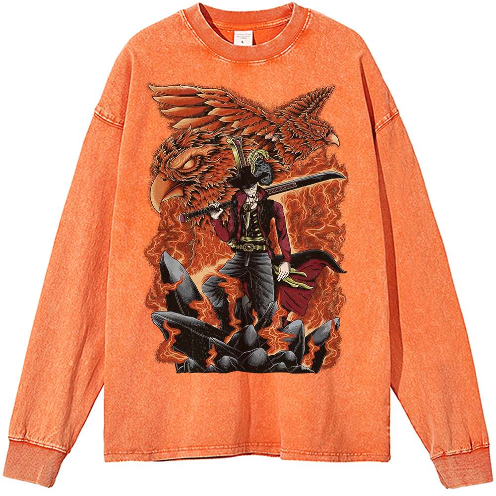 Dracule Mihawk is not only known for his unparalleled swordsmanship, but also for his mysterious and intriguing personality. As a key figure in One Piece, he serves as a mentor to Zoro and embodies the true spirit of adventure in the series. Wearing the Dracule Mihawk One Piece Vintage Anime Long Sleeve Shirt allows fans to express their admiration for this legendary character, making a bold statement about their love for epic battles and grand voyages.