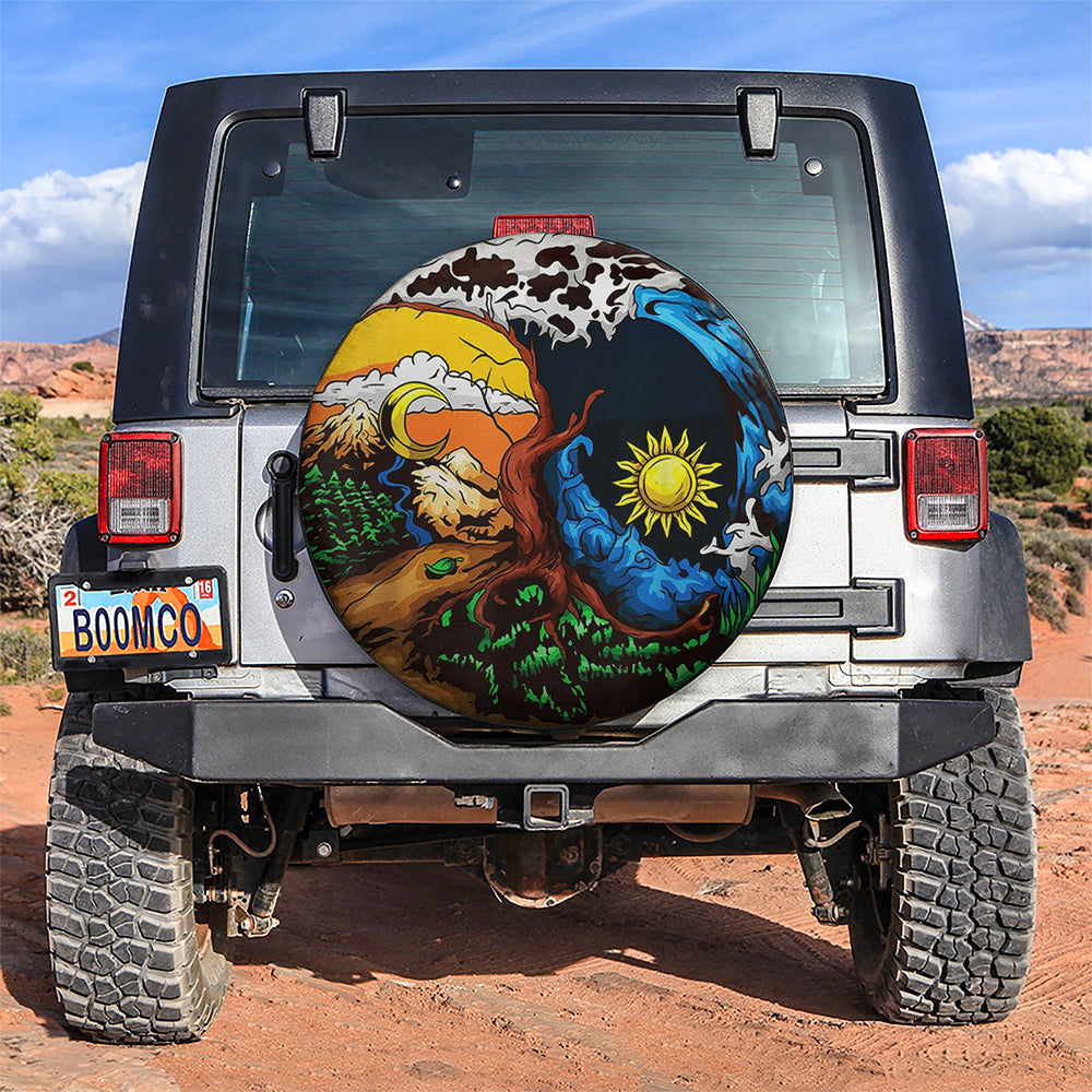 Earth Sun Moon Yin Yang Jeep Car Spare Tire Covers Gift For Campers