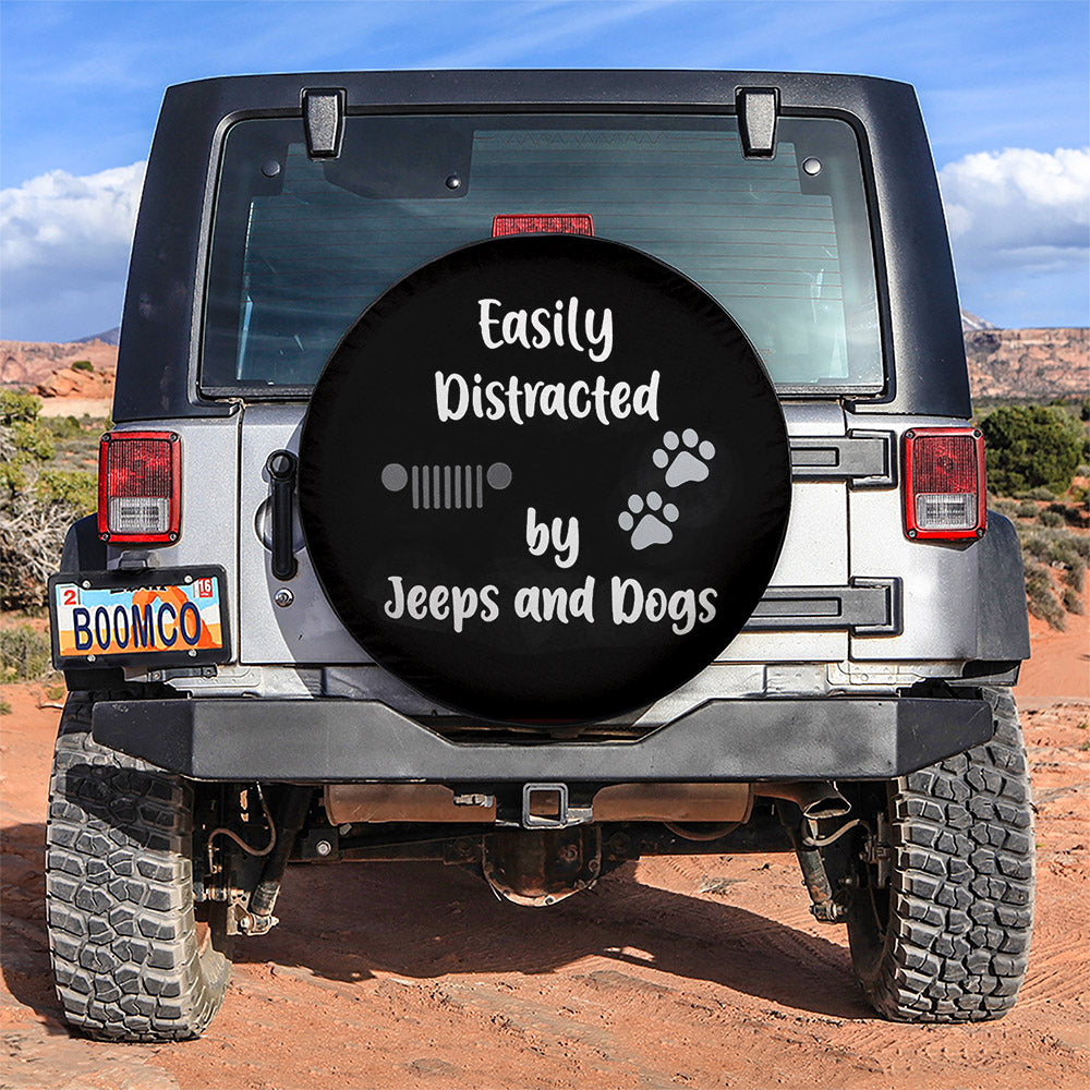 Easily Distracted By Jeeps And Dogs Car Spare Tire Covers Gift For Campers