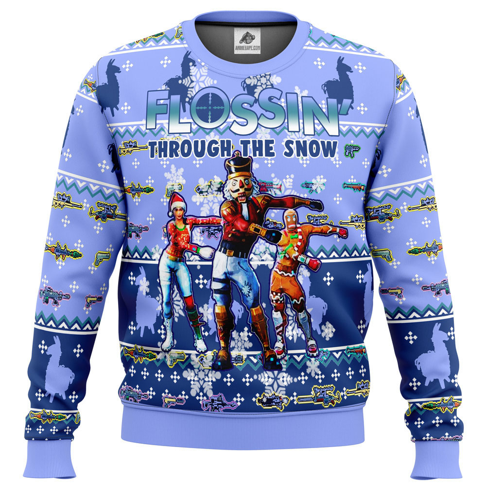 Featuring the iconic Snow Floss dance move and vibrant Fortnite-themed designs, this sweater captures the essence of the game’s fun and energetic atmosphere. It’s a perfect blend of anime-inspired style and holiday cheer, allowing you to show off your love for both anime and Fortnite.
