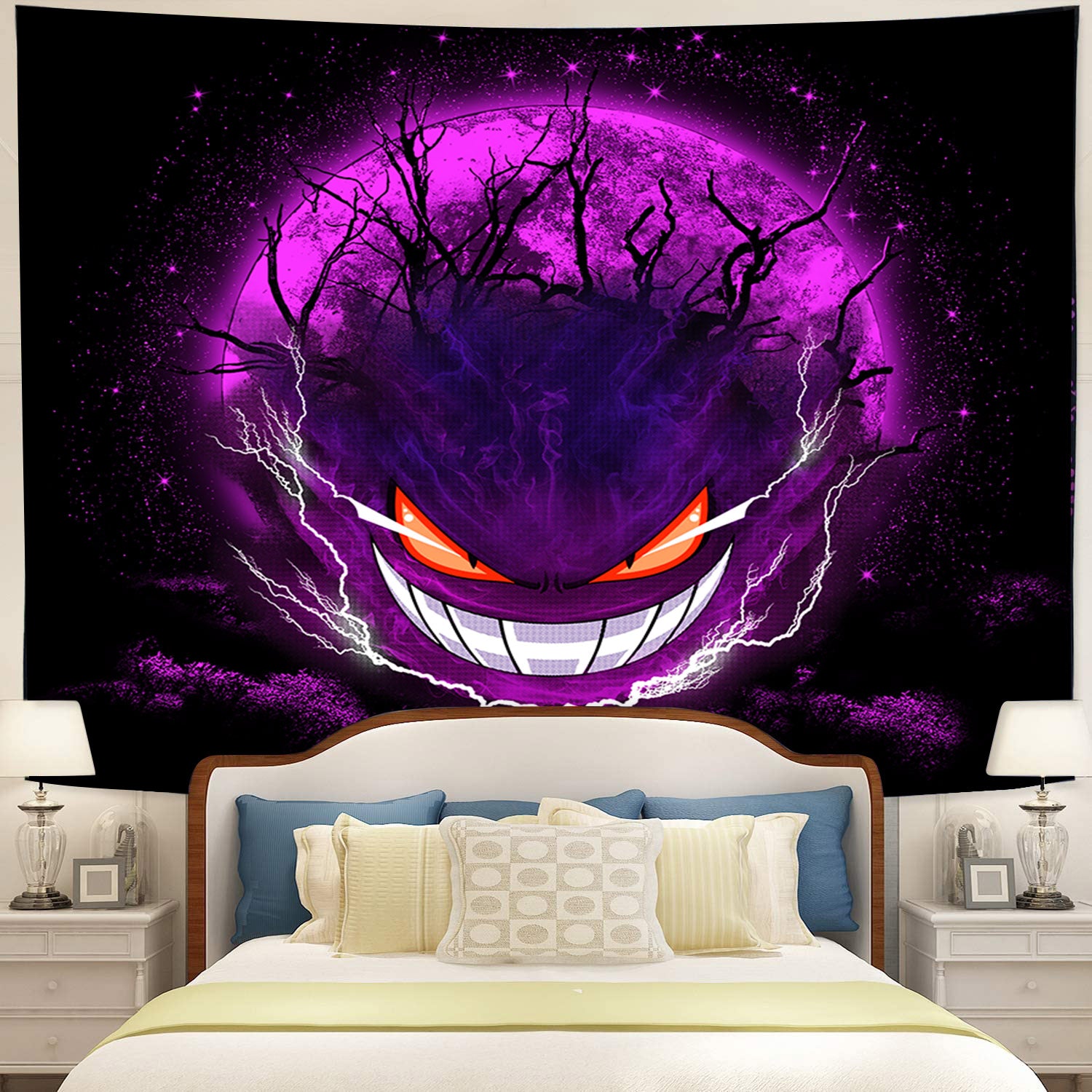 Gengar Pokemon Ghost Scary Moonlight Tapestry Room Decor