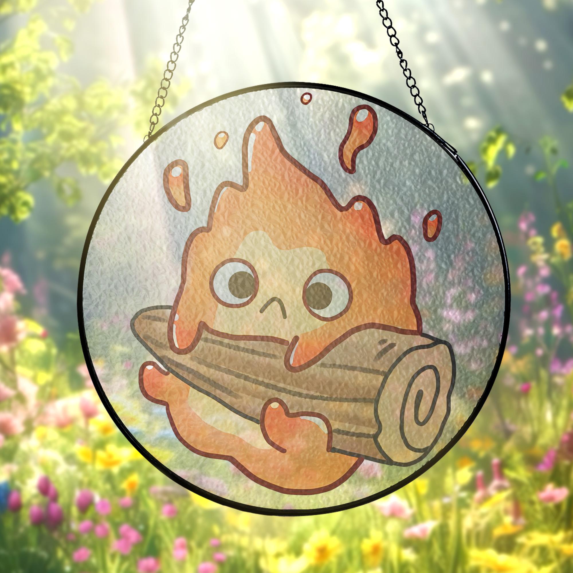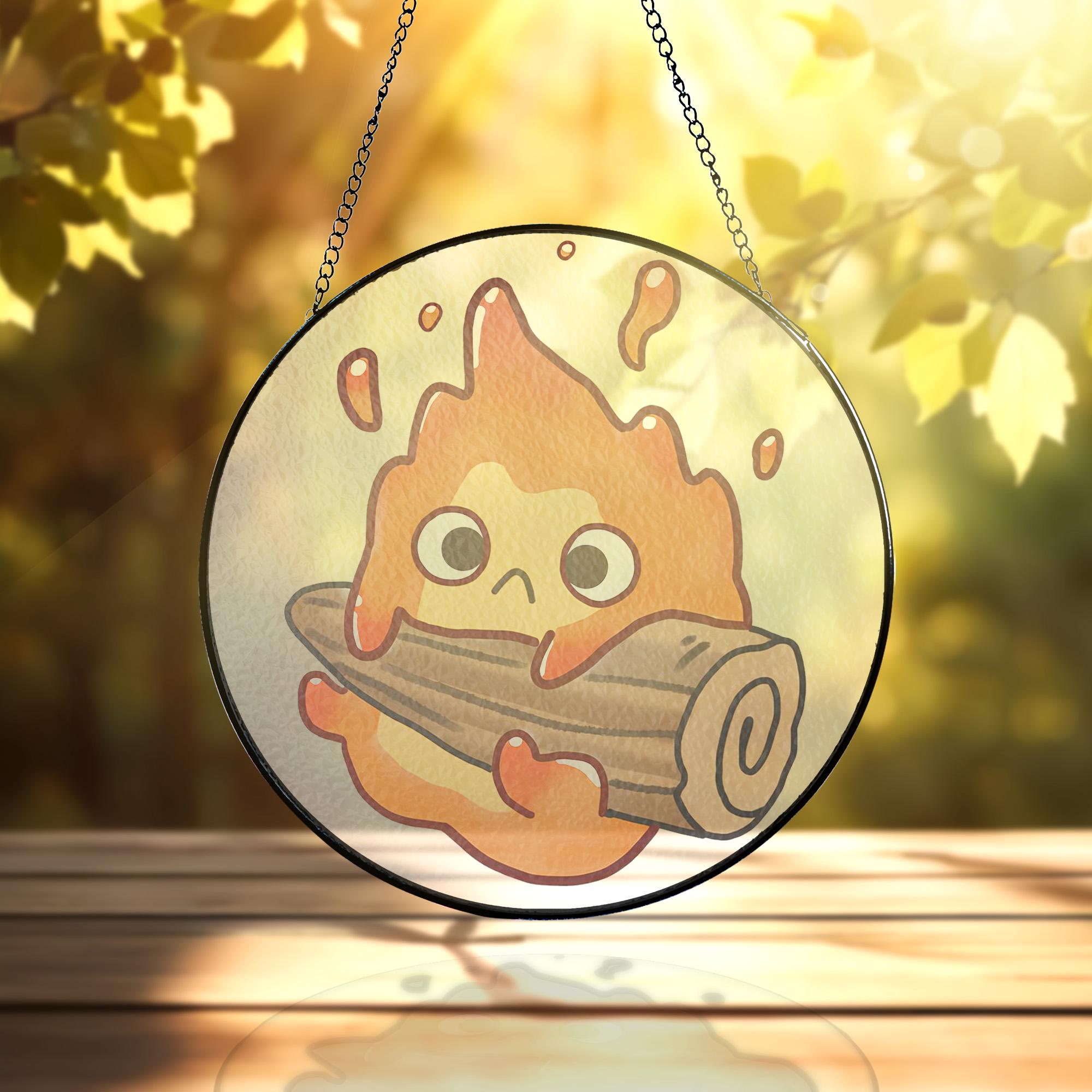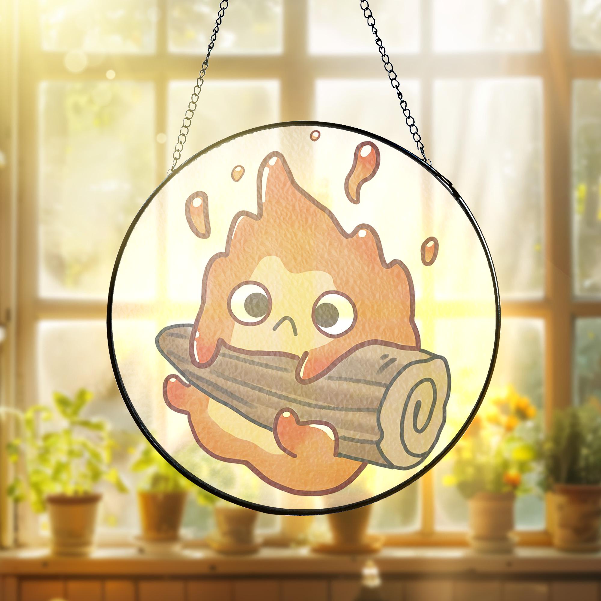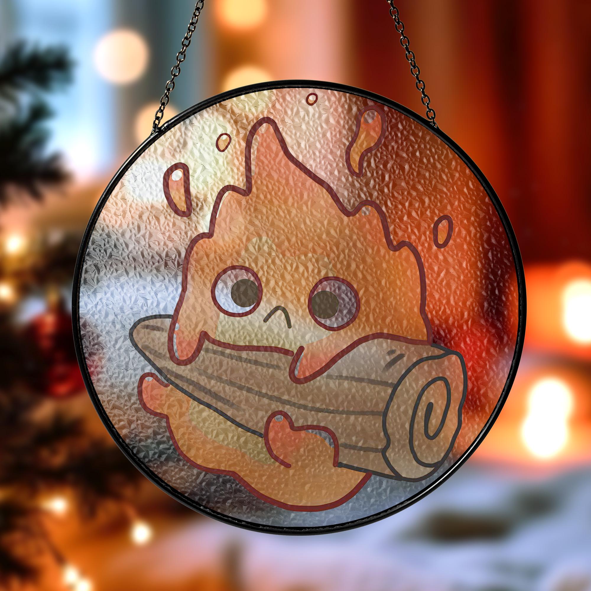 Ghibli Howls Moving Castle Chibi Calcifer Stained Glass Suncatcher