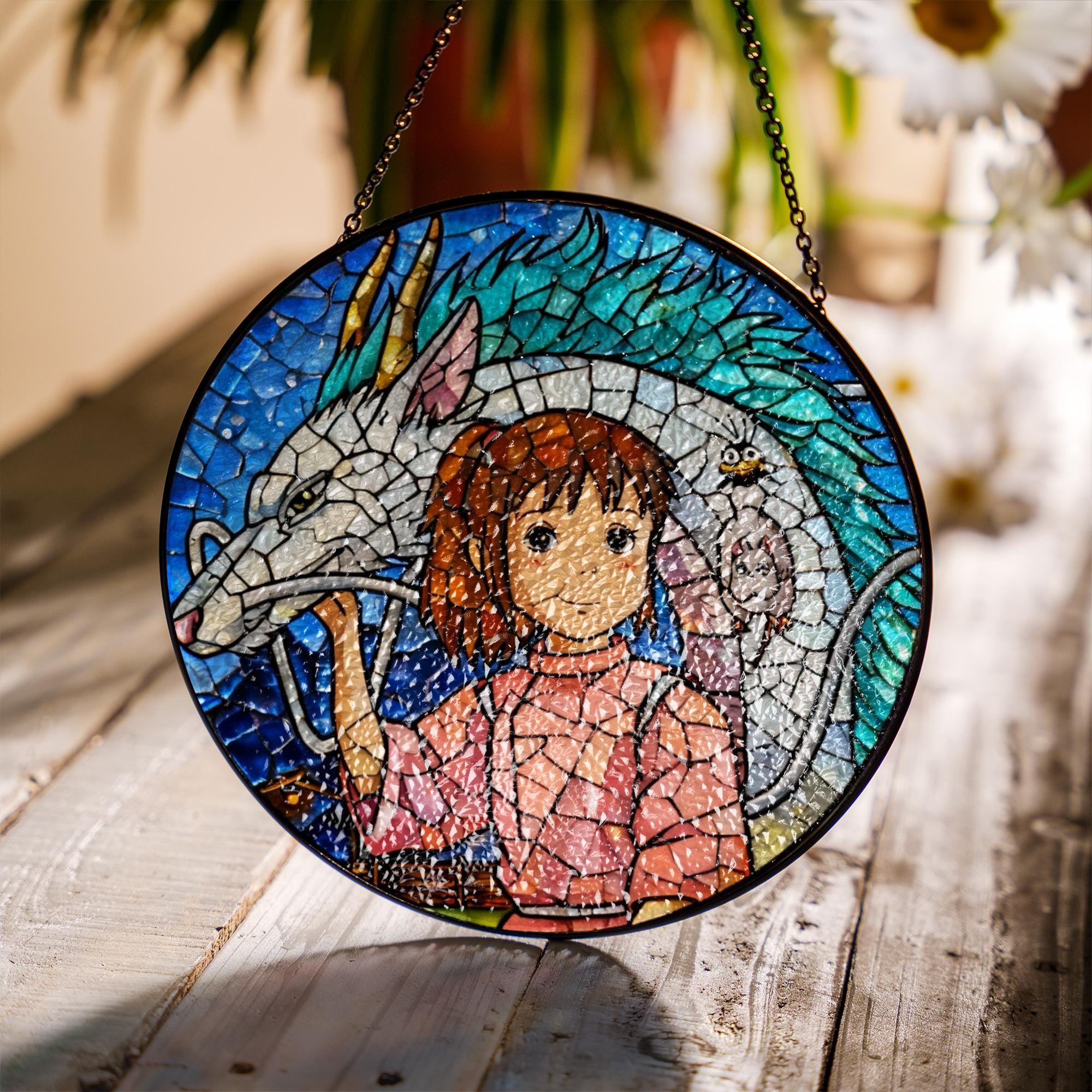 Ghibli Spirited Away Chihiro and Haku Stained Glass Suncatcher