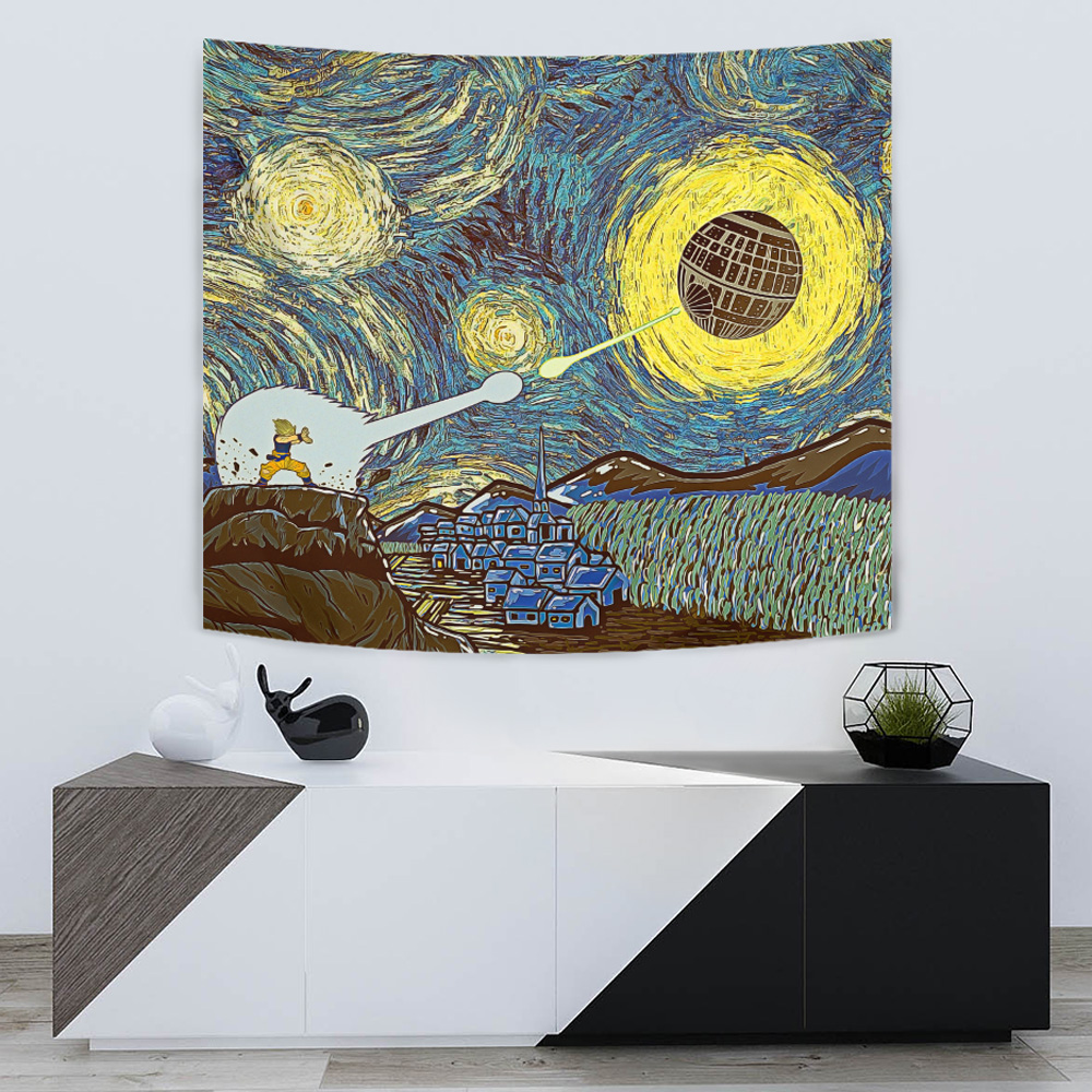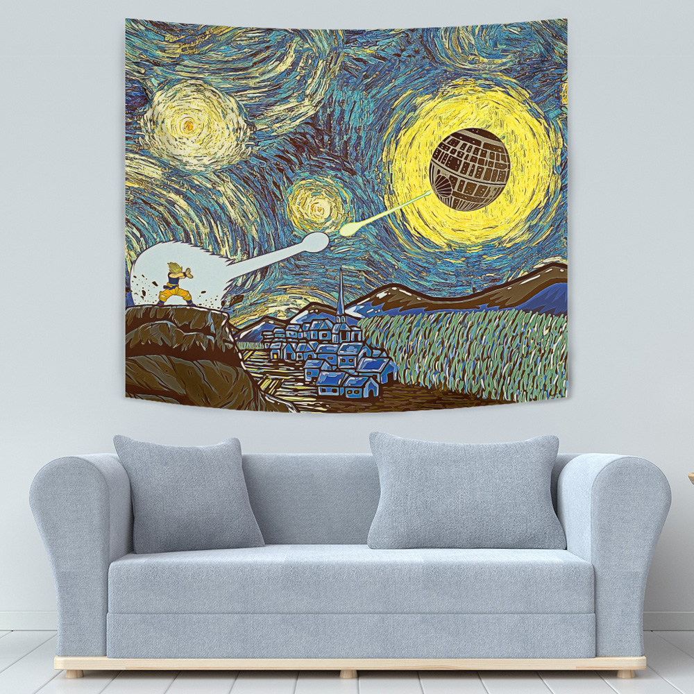Introducing the Goku vs Death Star Starry Night Tapestry – a stunning fusion of anime and pop culture that will leave fans in awe!