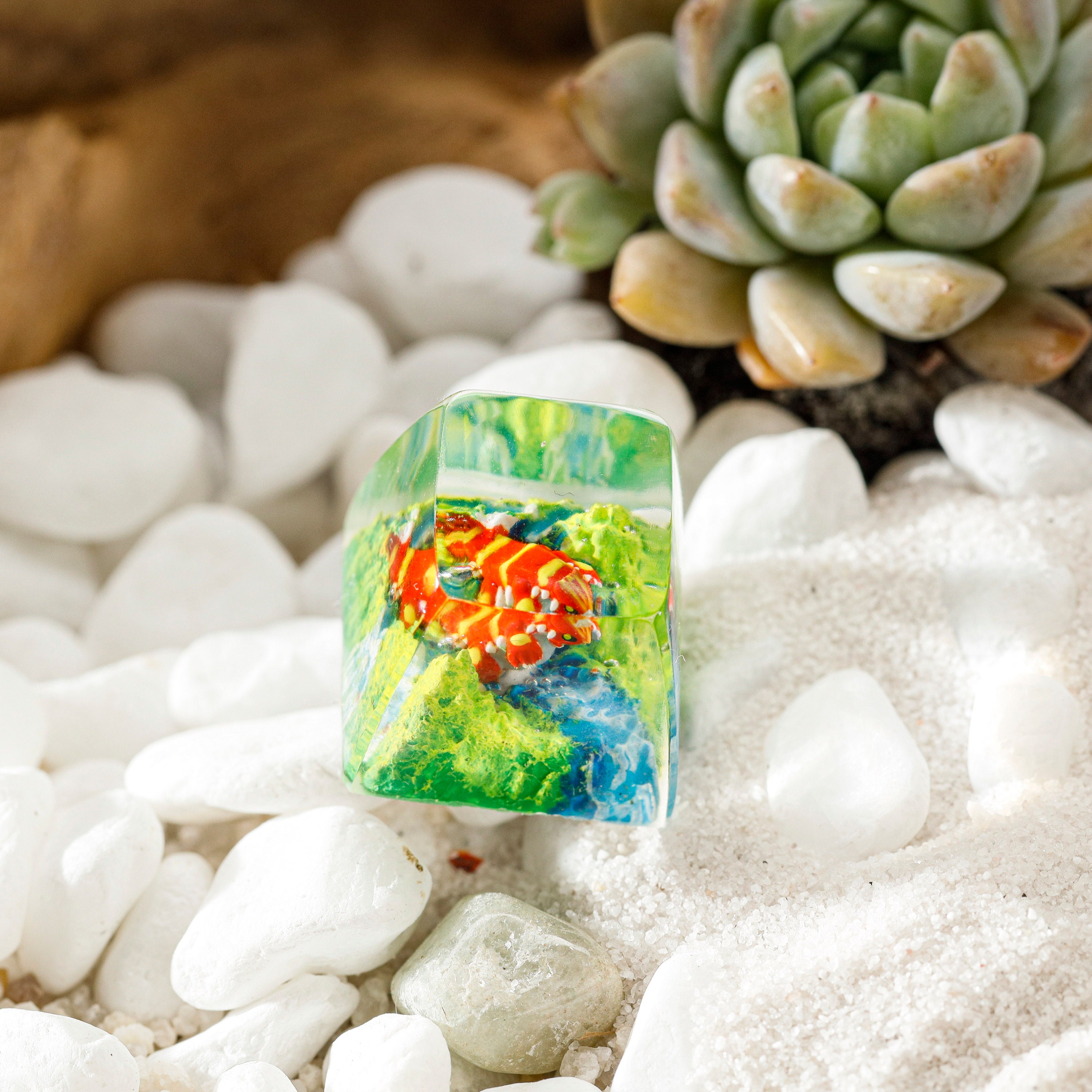 Our use of top-notch resin ensures an unmatched gloss and transparency, allowing you to admire the intricate details encapsulated within the keycap. Every keycap from our workshop embodies our unwavering commitment to quality and craftsmanship.