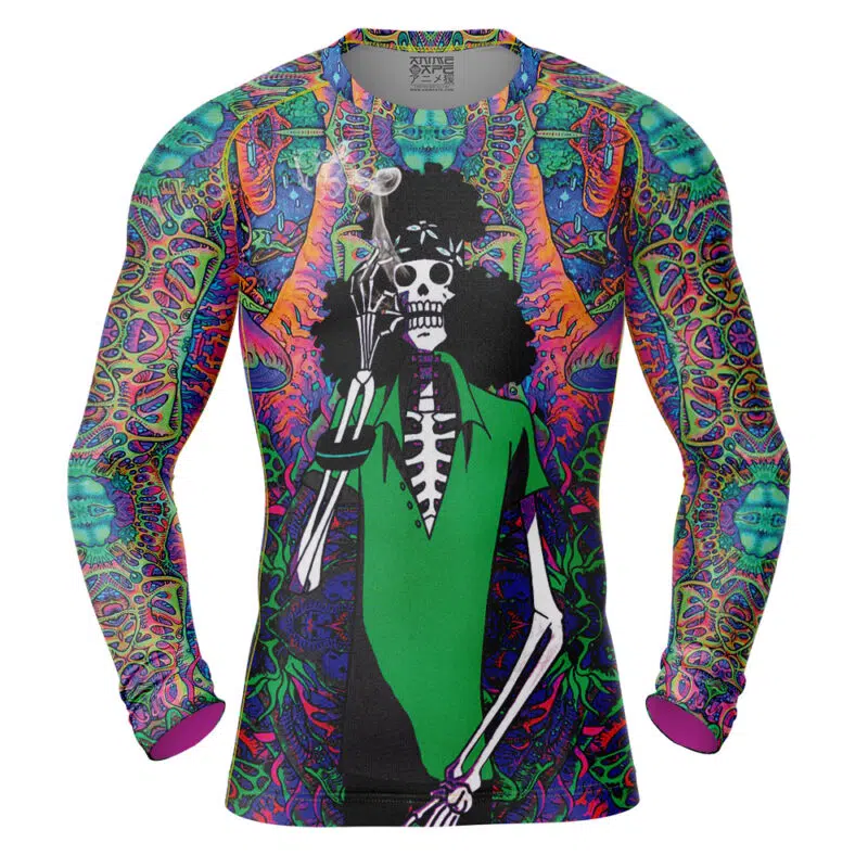 Embrace the free spirit of Brook from One Piece with our exclusive Hippie Trip Brook Long Sleeve Rash Guard Compression Shirt! This design captures Brook s vibrant personality and love for music, making it perfect for any true fan who resonates with his adventurous soul and infectious energy. Available only at AnimeBape, this shirt is a unique creation that sets you apart from the crowd, ensuring you showcase your love for One Piece like never before. Whether you re hitting the beach, attending a cosplay event, or just chilling at home, this versatile rash guard is ideal for all occasions. Don t miss out on the chance to own this exclusive piecetreat yourself as a devoted anime enthusiast or gift it to friends or little ones who adore Brook! At AnimeBape, we pride ourselves on offering high-quality, exclusive designs related to your favorite characters and series. Explore our collection for more unique One Piece items and complete your fan wardrobe today! #brookshirt #onepiececlothing #animefashion #animeapparel #onepieceexclusive #cosplaygear
