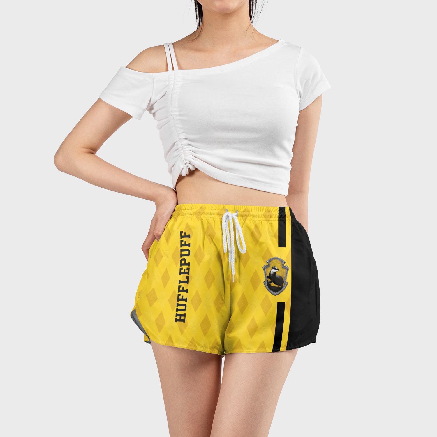 Show your loyalty to Hufflepuff with our Hufflepuff Harry Potter Women Board Shorts, exclusively at AnimeBape! These board shorts are not just a piece of clothing; they’re a statement of your pride as a dedicated fan of the Wizarding World.