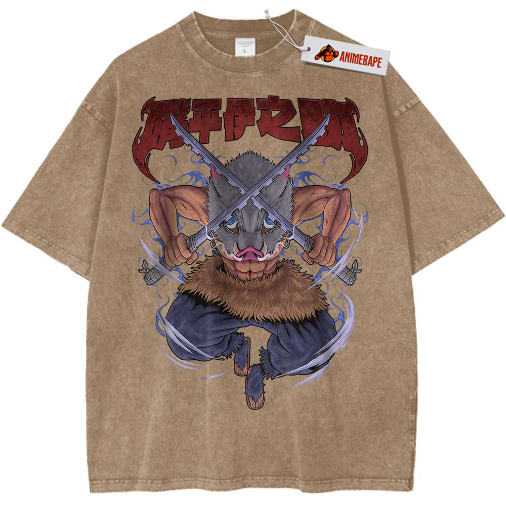 Inosuke Hashibira, one of the standout characters from Demon Slayer, is known for his raw strength and playful competitiveness. Raised by wild boars, Inosuke embodies the spirit of the beast, making him a formidable ally and a fierce warrior. This shirt allows fans to proudly display their admiration for his character while enjoying the bold vintage design that brings a touch of nostalgia to their wardrobe.