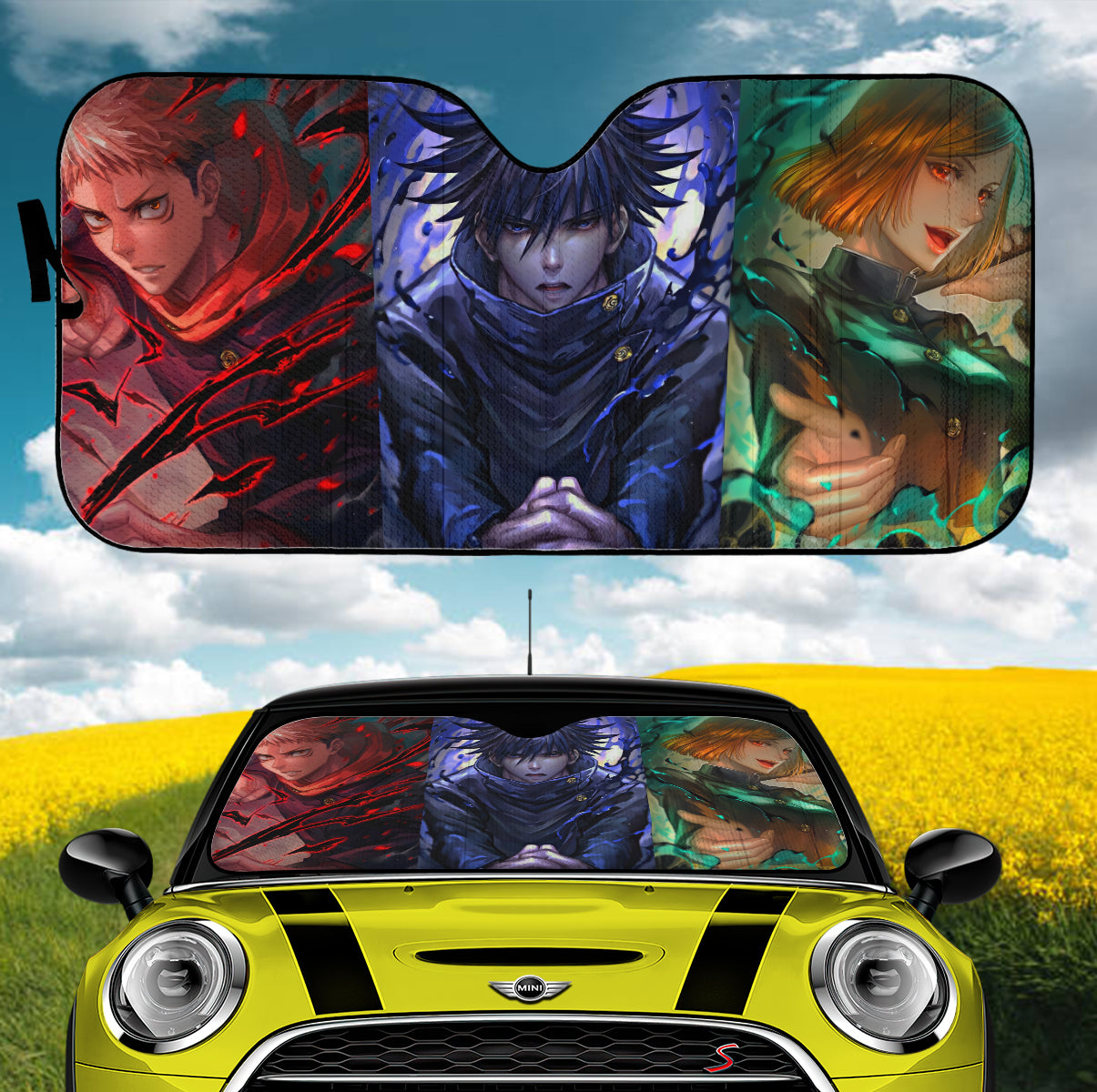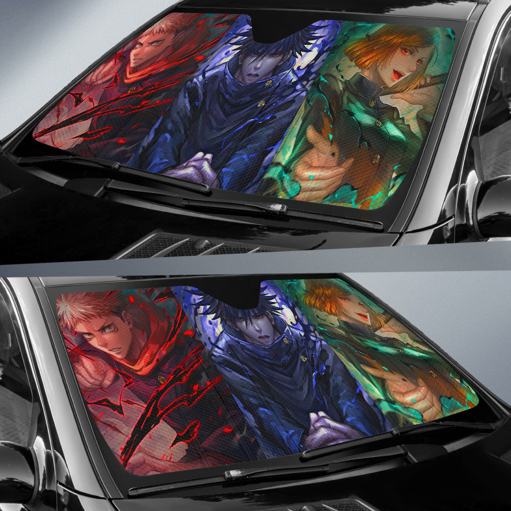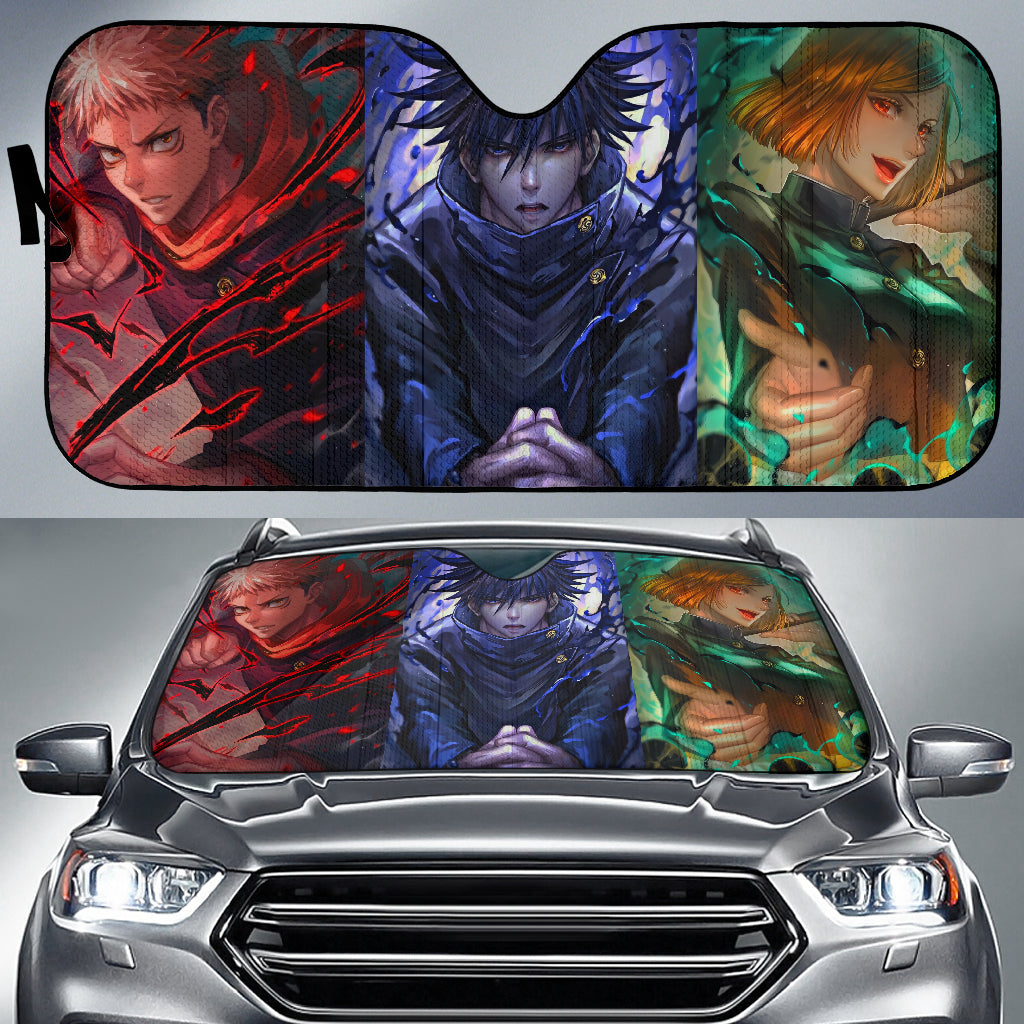 Embrace the spirit of Jujutsu Kaisen and add the Jujutsu Kaisen Yuuji Megumi Nobara Art Car Auto Sunshades to your collection today!