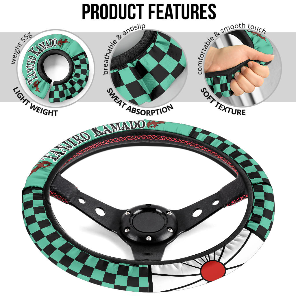 Elevate your driving experience and show off your fandom with the Kimetsu No Yaiba Tanjiro Kamado Car Steering Wheel Cover’available exclusively at AnimeBape.