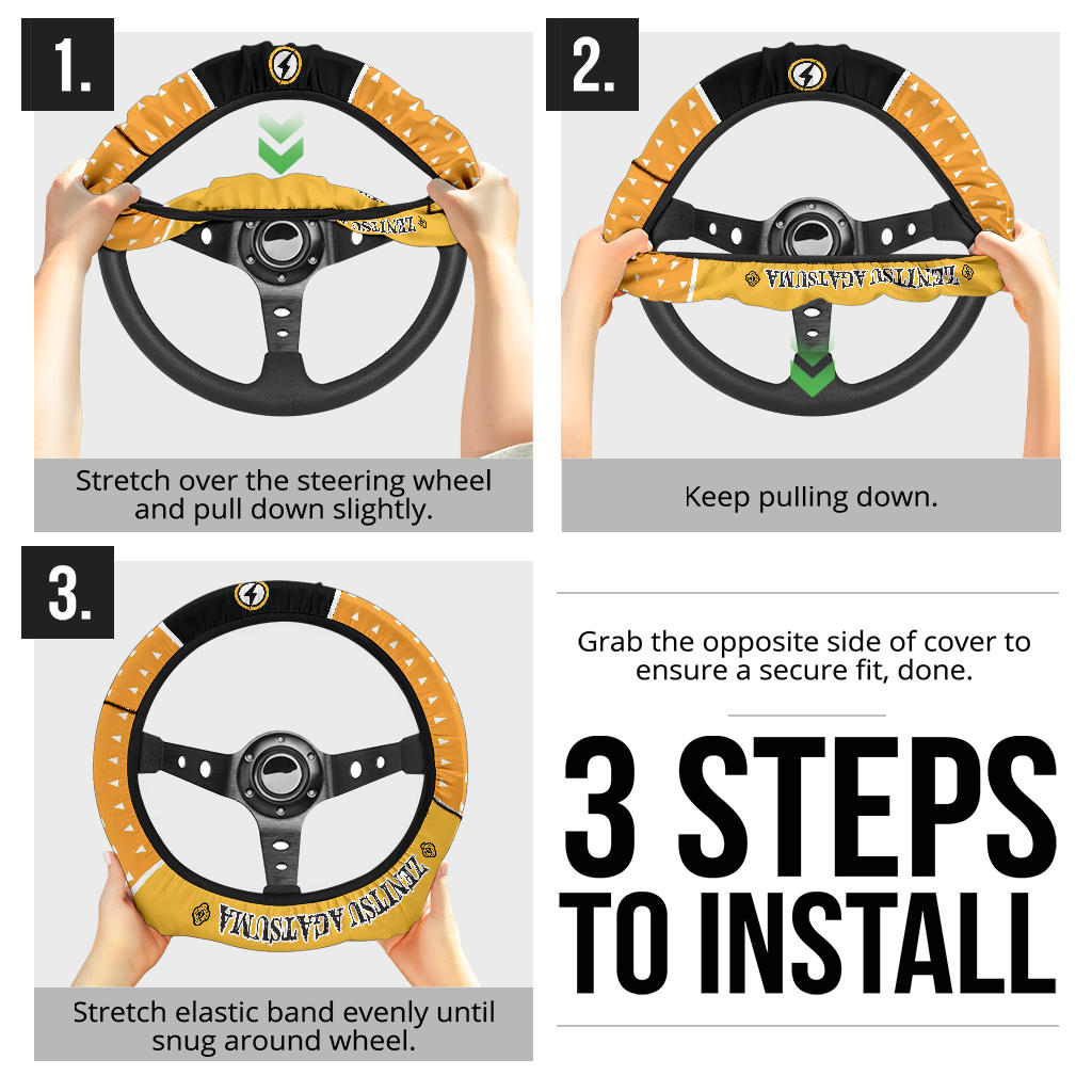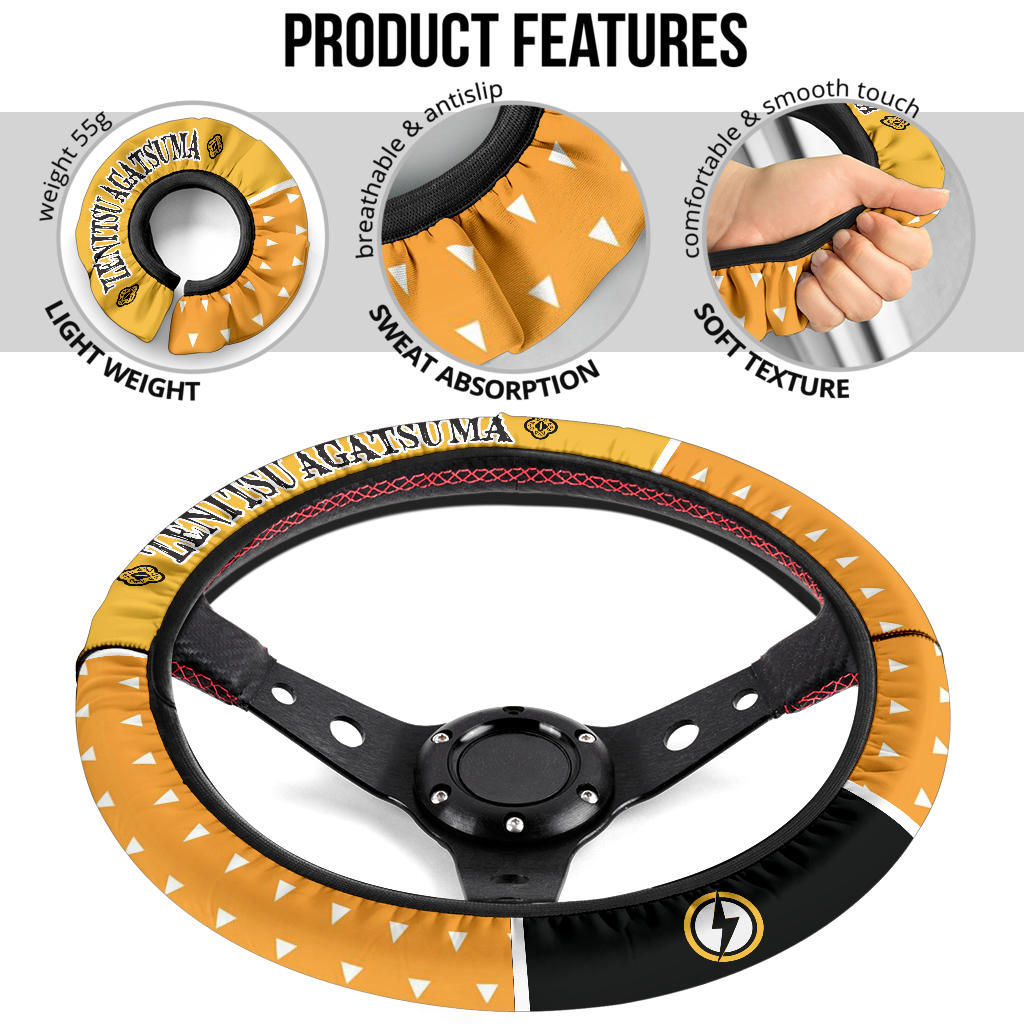 Join the ranks of dedicated fans celebrating their love for “Demon Slayer” with the Kimetsu No Yaiba Zenitsu Agatsuma Car Steering Wheel Cover today.
