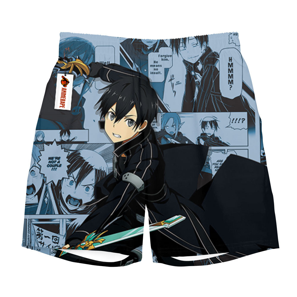 Dive into the world of Sword Art Online with our exclusive “Kirito Board Shorts Manga Style 3005,” available only at AnimeBape! Crafted from lightweight, moisture-wicking fabric, these above-knee shorts ensure you stay comfortable and stylish whether you’re hitting the gym, enjoying a day at the beach, or attending your favorite anime convention. Show off your love for Kirito and the iconic series while making a statement at any public event. Don’t miss out on this must-have addition to your anime-inspired wardrobe-grab your pair today and let your fandom shine!