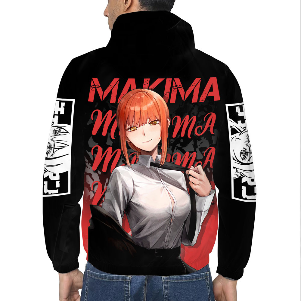 Makima is a captivating figure in Chainsaw Man, renowned for her enigmatic personality and powerful presence. As a high-ranking Public Safety Devil Hunter, she is both alluring and formidable, commanding attention wherever she appears. The Makima Style Windbreaker Jacket captures her essence, allowing fans to express their admiration for this complex character effortlessly. Whether you are attending anime conventions or simply exploring the outdoors, this windbreaker is a powerful nod to Makima’s style.