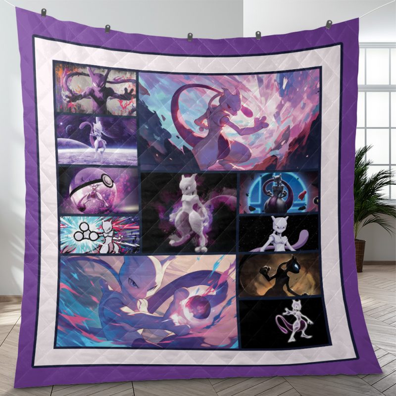 Crafted with high-quality materials, this quilt blanket is not only visually appealing but also cozy and comfortable, perfect for snuggling up while watching your favorite episodes or simply adding a touch of fandom to your living space. The vibrant colors and intricate details of the design truly capture the essence of Mewtwo, making it a standout piece for any Pokemon enthusiast.