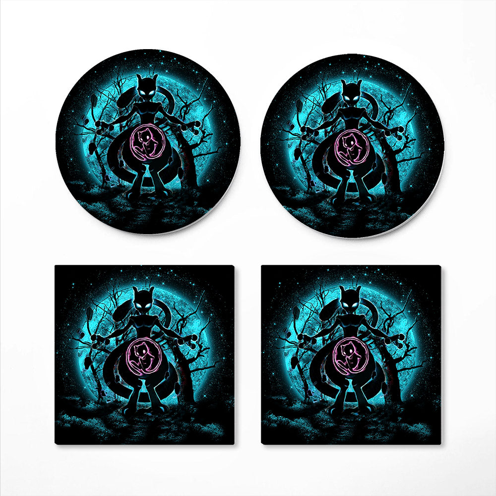 Elevate your anime collection today with the Mewtwo Moonlight Ceramic Drink Coasters from AnimeBape.