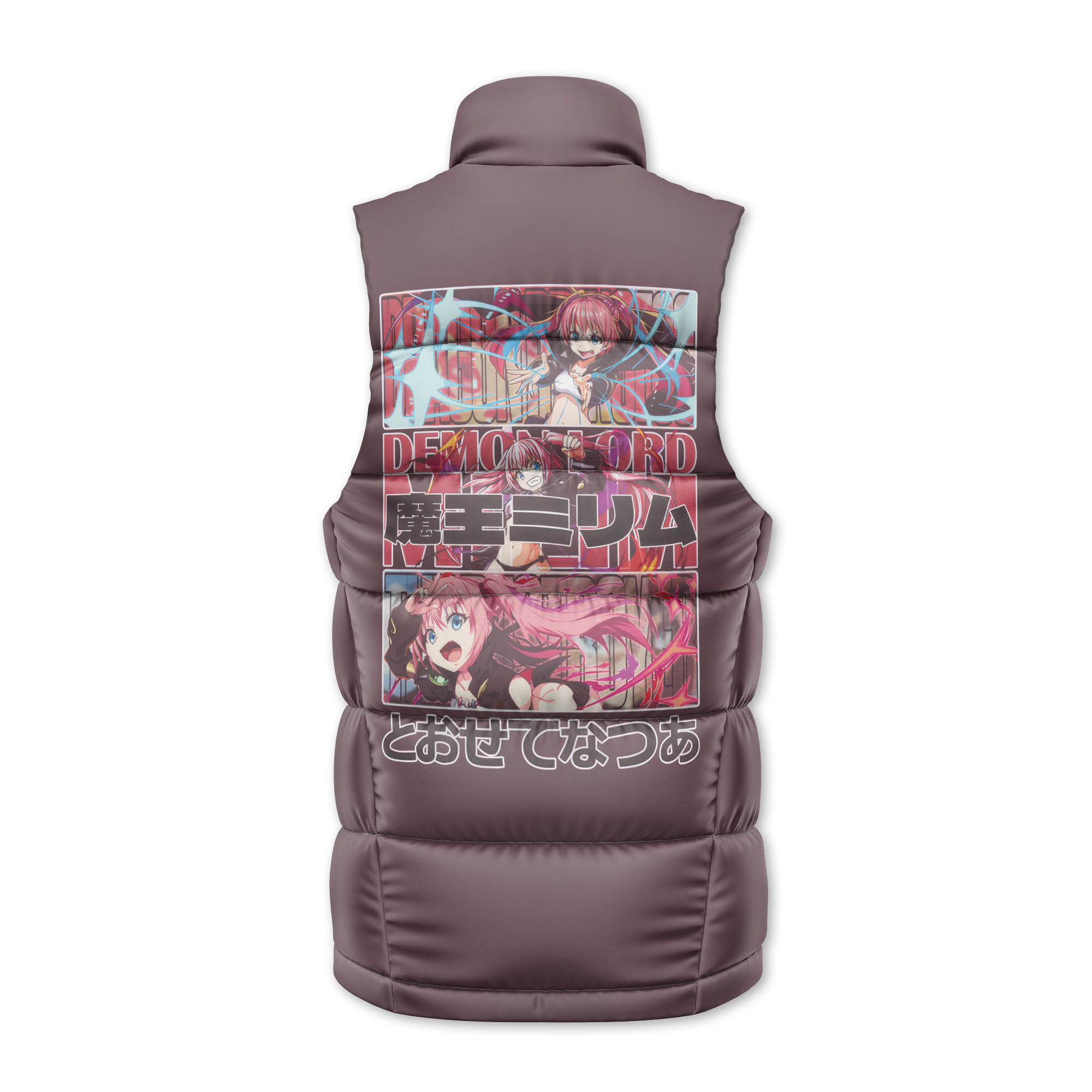 Beyond its visual appeal, this jacket offers both style and warmth. Crafted with high-quality materials and a cozy down filling, it provides comfort during colder seasons while allowing freedom of movement with its sleeveless design. Whether you’re attending an anime convention, channeling the energy of Milim, or simply adding a touch of anime-inspired fashion to your wardrobe, this jacket is a bold choice.