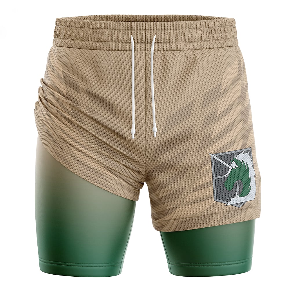 Military Police Attack on Titan Compression Workout Training Shorts (2-in-1)
