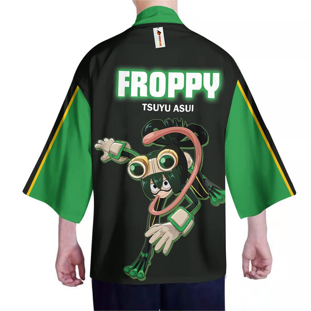 Dive into the world of My Hero Academia with the enchanting Froppy Haori Kimono! Inspired by the beloved character Tsuyu Asui, known for her calm demeanor and fierce loyalty, this kimono captures the essence of her unique personality and abilities. Experience the emotional rollercoaster of heroism and friendship every time you wear it! This exclusive design is only available at AnimeBape, making it a must-have for true fans who want to stand out with unique apparel that reflects their love for the series. Perfect for conventions, casual outings, or cozy nights in while binge-watching your favorite episodes, this haori kimono not only showcases your fandom but also adds a touch of anime flair to any outfit. Whether you re treating yourself or looking for the perfect gift for a fellow anime enthusiast, this Froppy Haori Kimono is sure to delight fans of all ages. It s an ideal choice for friends who admire Tsuyu s character or even for young fans who aspire to embody the spirit of their favorite hero! At AnimeBape, we pride ourselves on offering exclusive, high-quality designs that celebrate the characters you love. Don t stop at Froppy; explore our collection for more exclusive designs related to My Hero Academia and find your new favorite piece today! #froppyhaori #myheroacademiakamono #myheroacademiafan #froppykimono