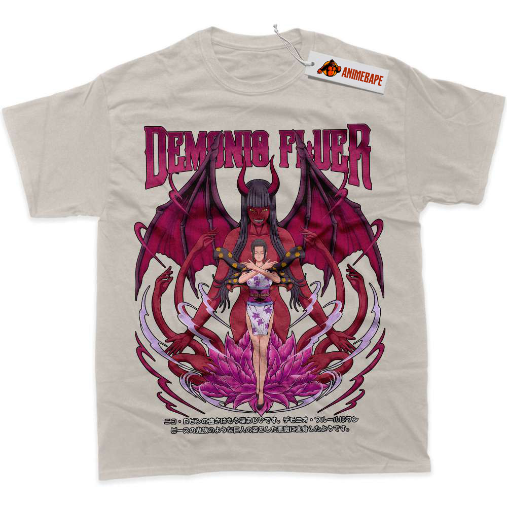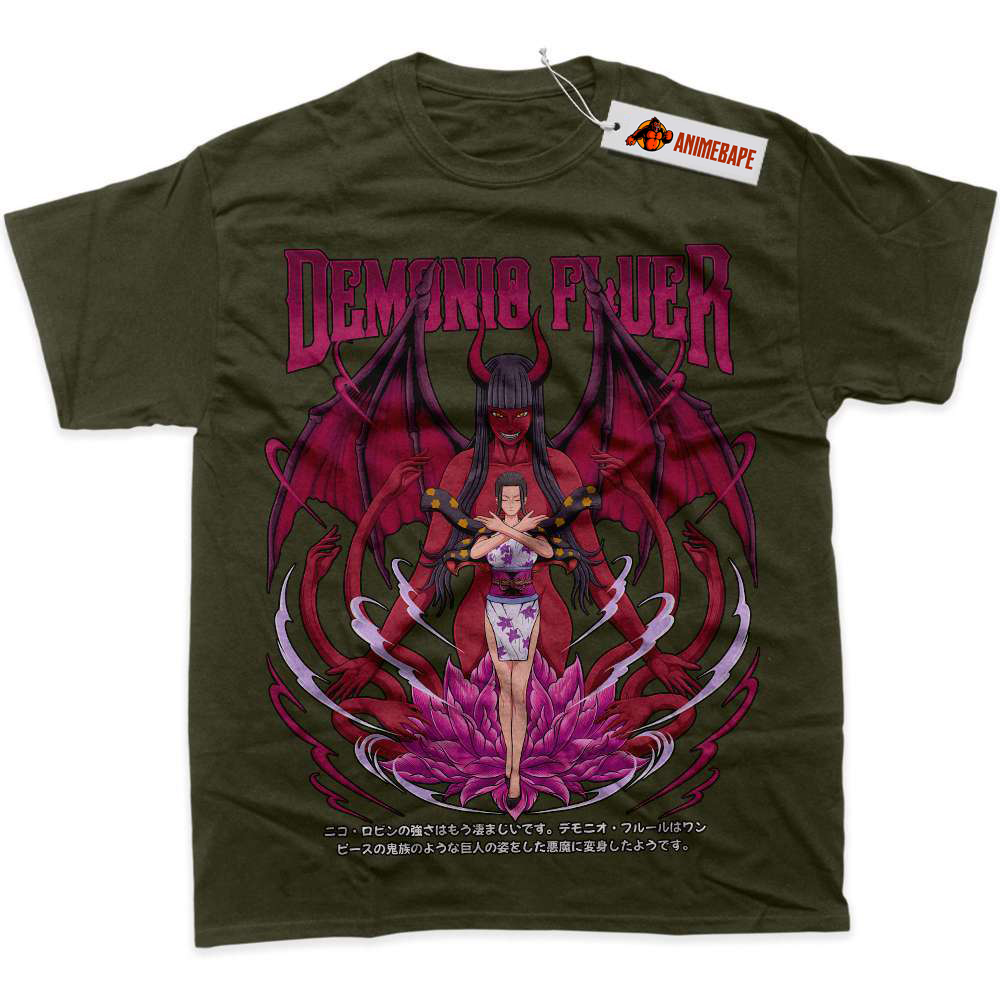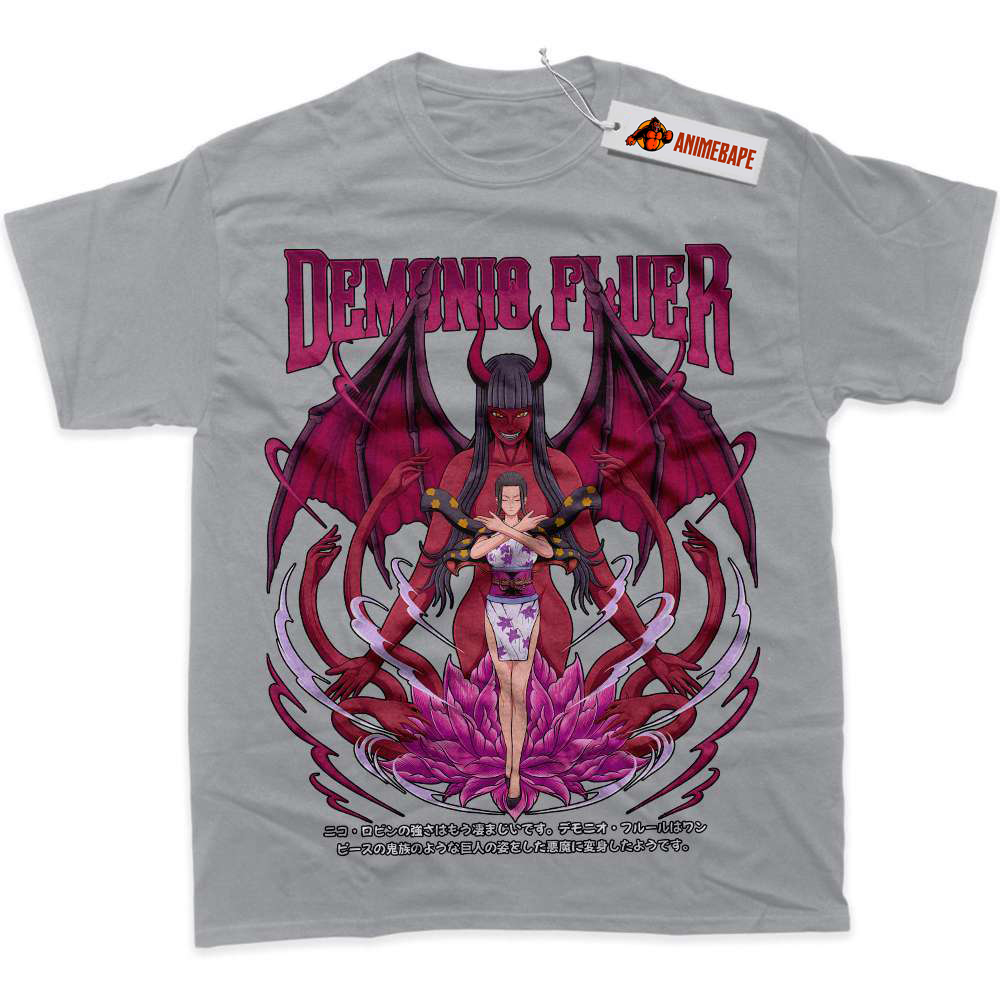 Nico Robin, also known as the “Devil Child,” is a significant member of the Straw Hat Pirates in One Piece. With her deep knowledge of history and ancient scripts, Nico Robin plays a crucial role in the quest for the ultimate treasure, the One Piece. Fans admire her strength, intelligence, and complex backstory, making her a standout character in the series. Wearing the One Piece Nico Robin Graphic Tee not only showcases your fandom but also your appreciation for her character’s resilience and growth throughout the series.