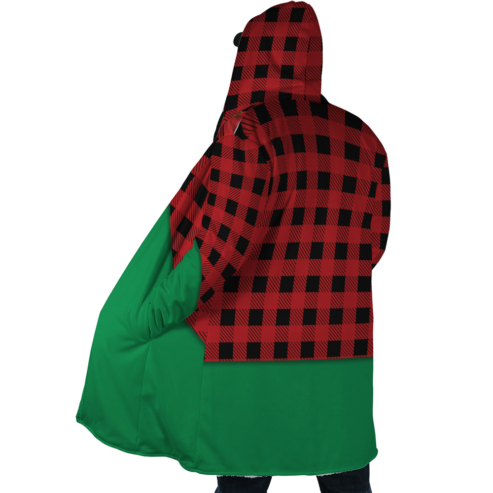 - Custom all-over print Hooded Cloak Coat’s outer fabric is polyester cotton, the inner is short pile faux fur fabric.