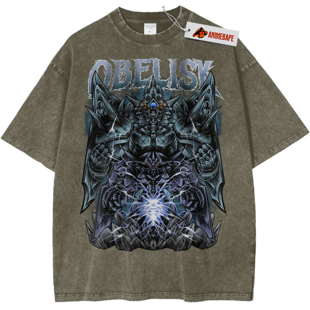 Obelisk the Tormentor is not just any monster; he is a part of the iconic Egyptian God Cards that play a significant role in the Yu-Gi-Oh! universe. Known for his immense power and formidable presence, Obelisk serves as a symbol of strength and resilience in battles. Wearing this tee allows you to carry a piece of that power with you, making it a must-have for fans who admire this legendary character.