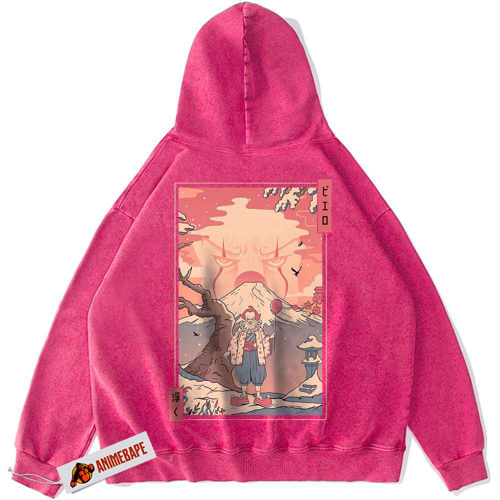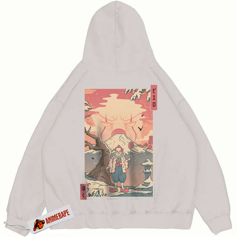 While Pennywise originates from literature, he has become a significant part of pop culture through film adaptations, most notably the 2017 movie “It” and its sequel. These adaptations have solidified Pennywise’s role as a classic horror icon, and now, anime fans can celebrate him in style. The intricate design on this hoodie echoes the haunting imagery associated with Pennywise, allowing fans to showcase their appreciation for this terrifying figure.