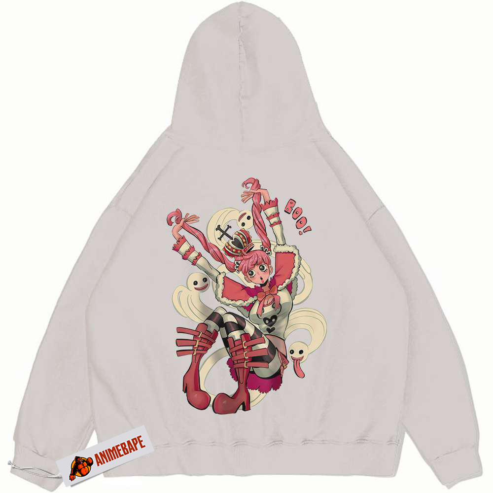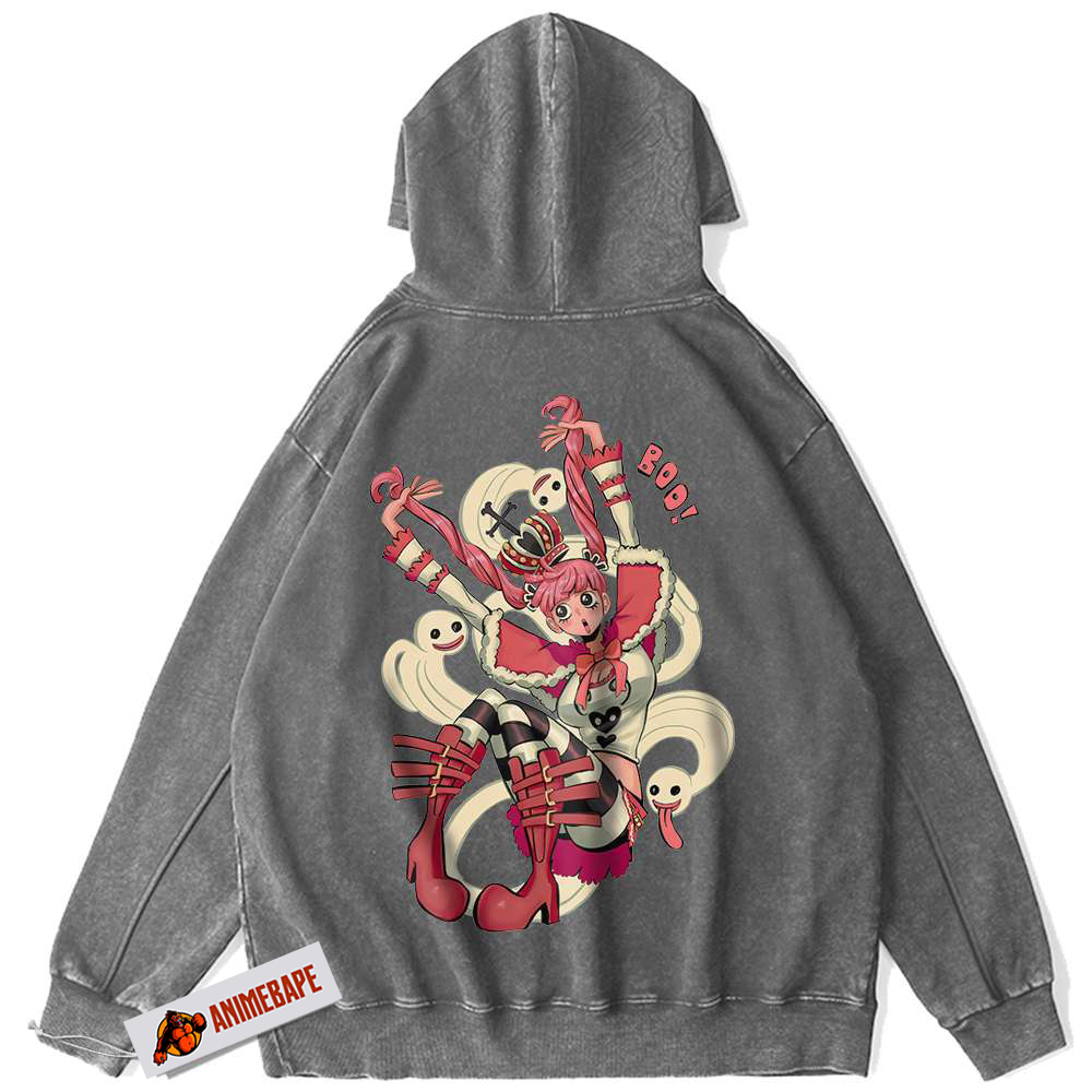 Perona, often known as the Ghost Princess, is a unique character in the One Piece universe. With her ability to manipulate ghosts and her spunky personality, she brings a whimsical flair to the storyline. Perona stands out with her distinctive aesthetic and quirky attitude, making her a favorite among fans. This hoodie celebrates her charm and spirit, making it a perfect piece for any avid follower of her story.