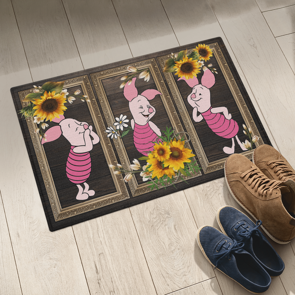 Elevate your home decor with the Piglet Sunflower Door Mat Bathroom Mats Home Decor, and let your love for Piglet shine through.