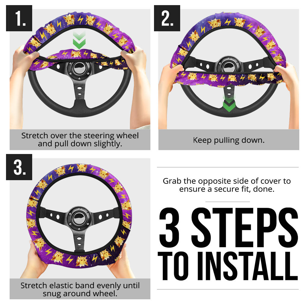 Elevate your automotive aesthetic with the Pokemon Galaxy Jolteon Eevee Evolution Car Steering Wheel Cover today!