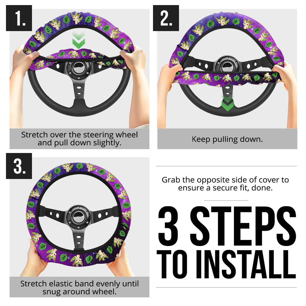 Grab your Pokemon Galaxy Leafon Eevee Evolution Car Steering Wheel Cover today and drive with your favorite Pokemon by your side!