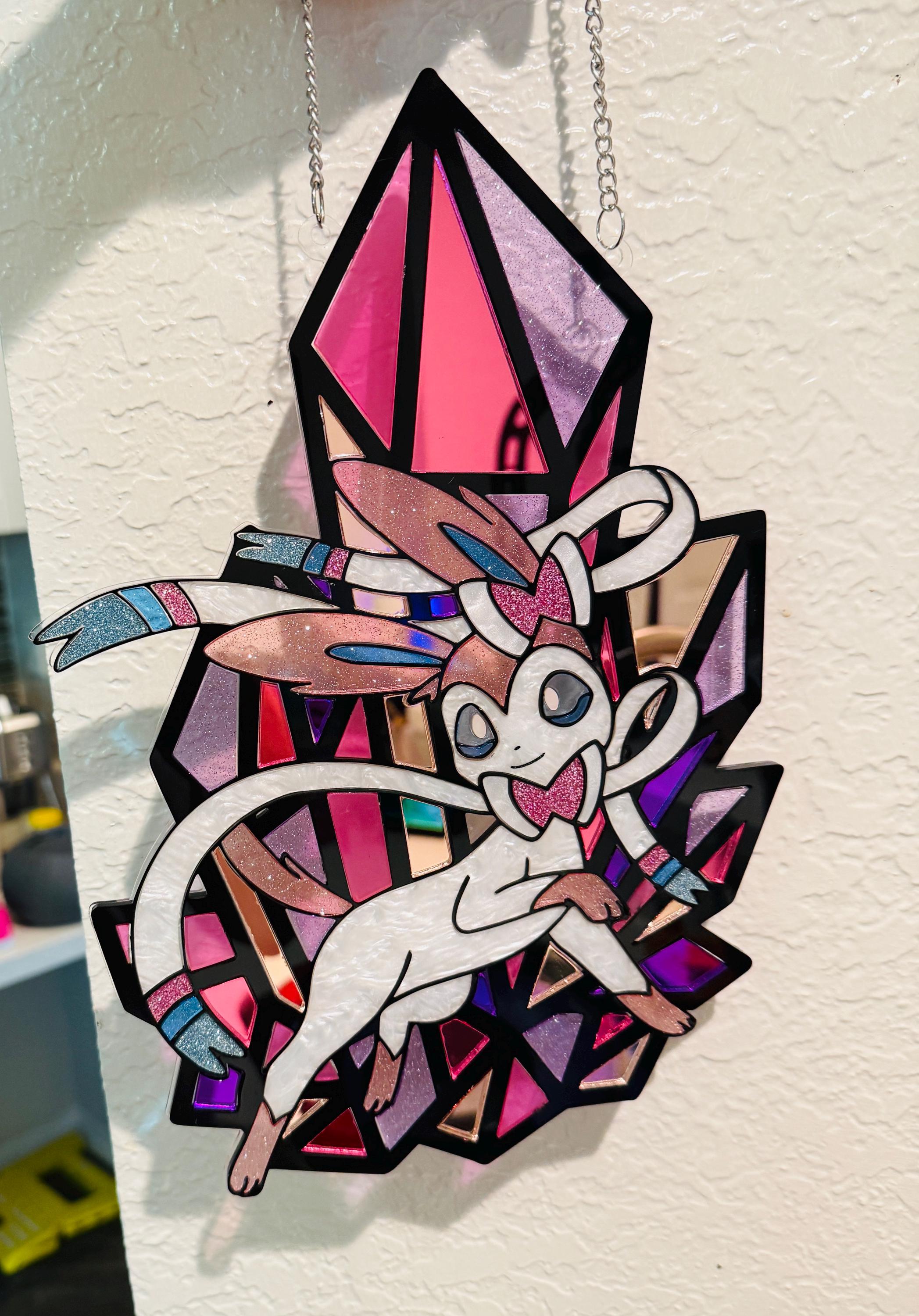 Pokemon Sylveon Custom Shape Stained Glass Suncatcher