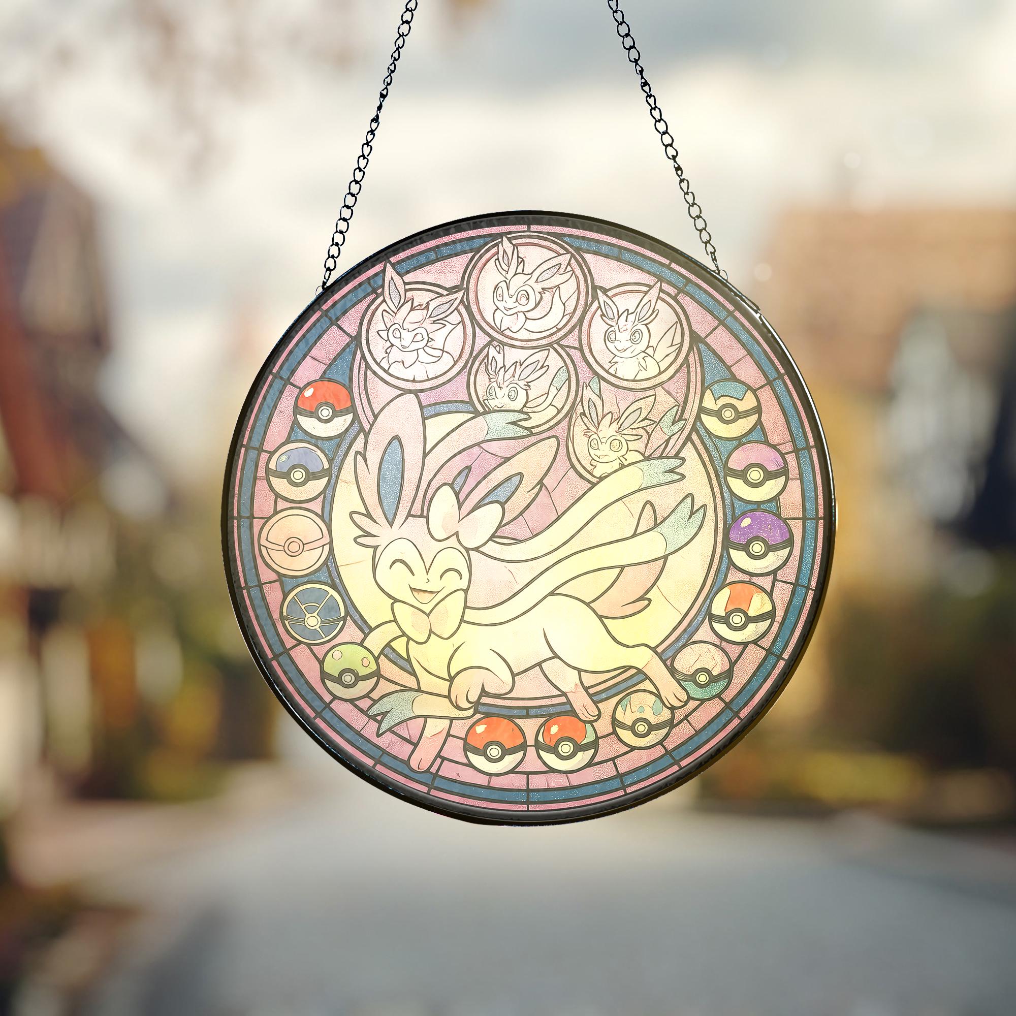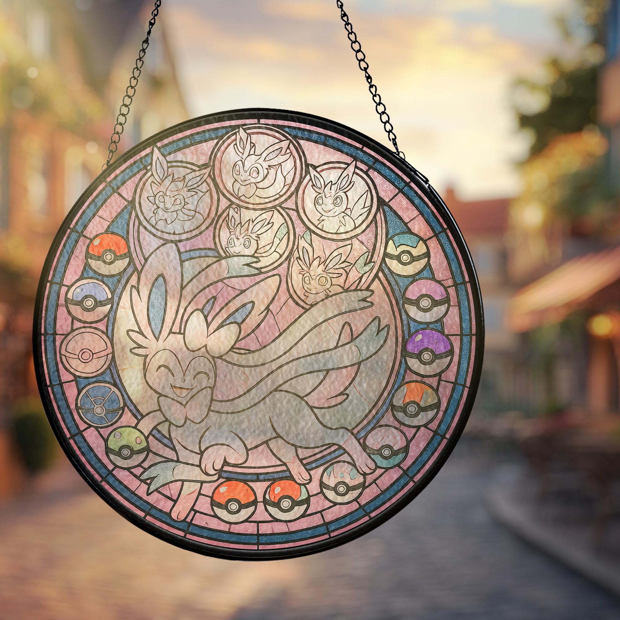 Pokemon Sylveon Fairy Type Stained Glass Suncatcher